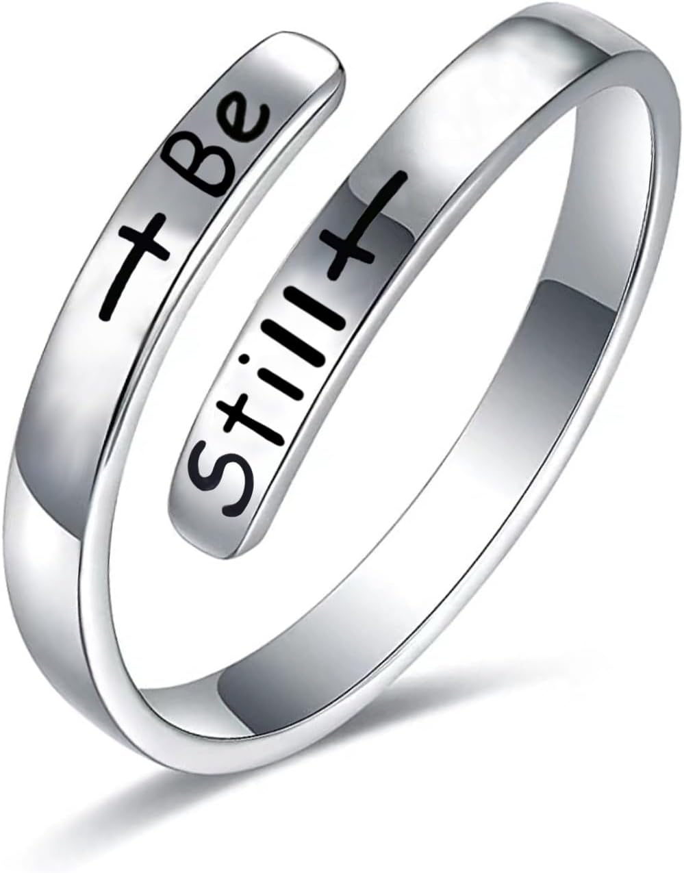 925 Sterling Silver Rings Inspirational Jewelry for Women Faith Cross Ring Gifts for Daughter Friend Faith Over Fear Wrap Open Ring Adjustable