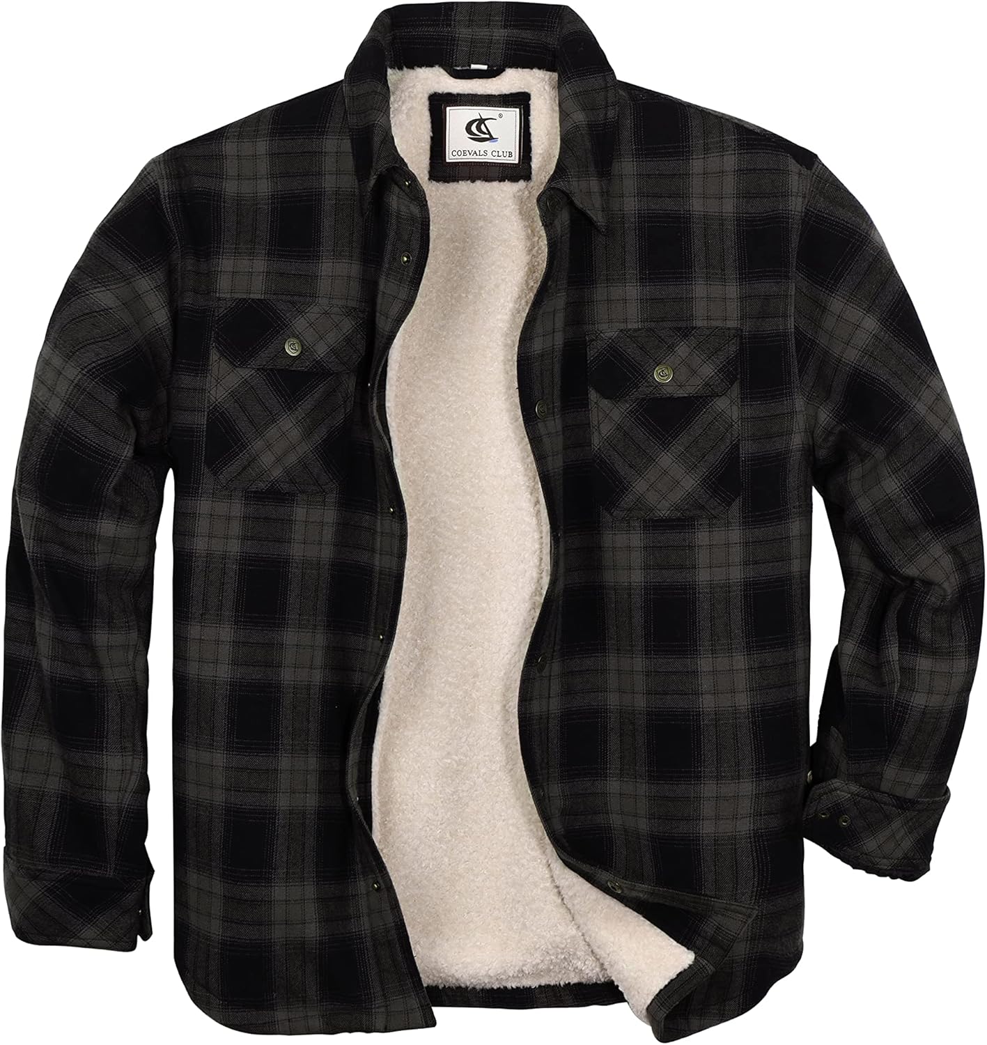 COEVALS CLUB Men's Flannel Shacket Casual Button Snap Sherpa Quilted Lined Premium Jacket Shirts