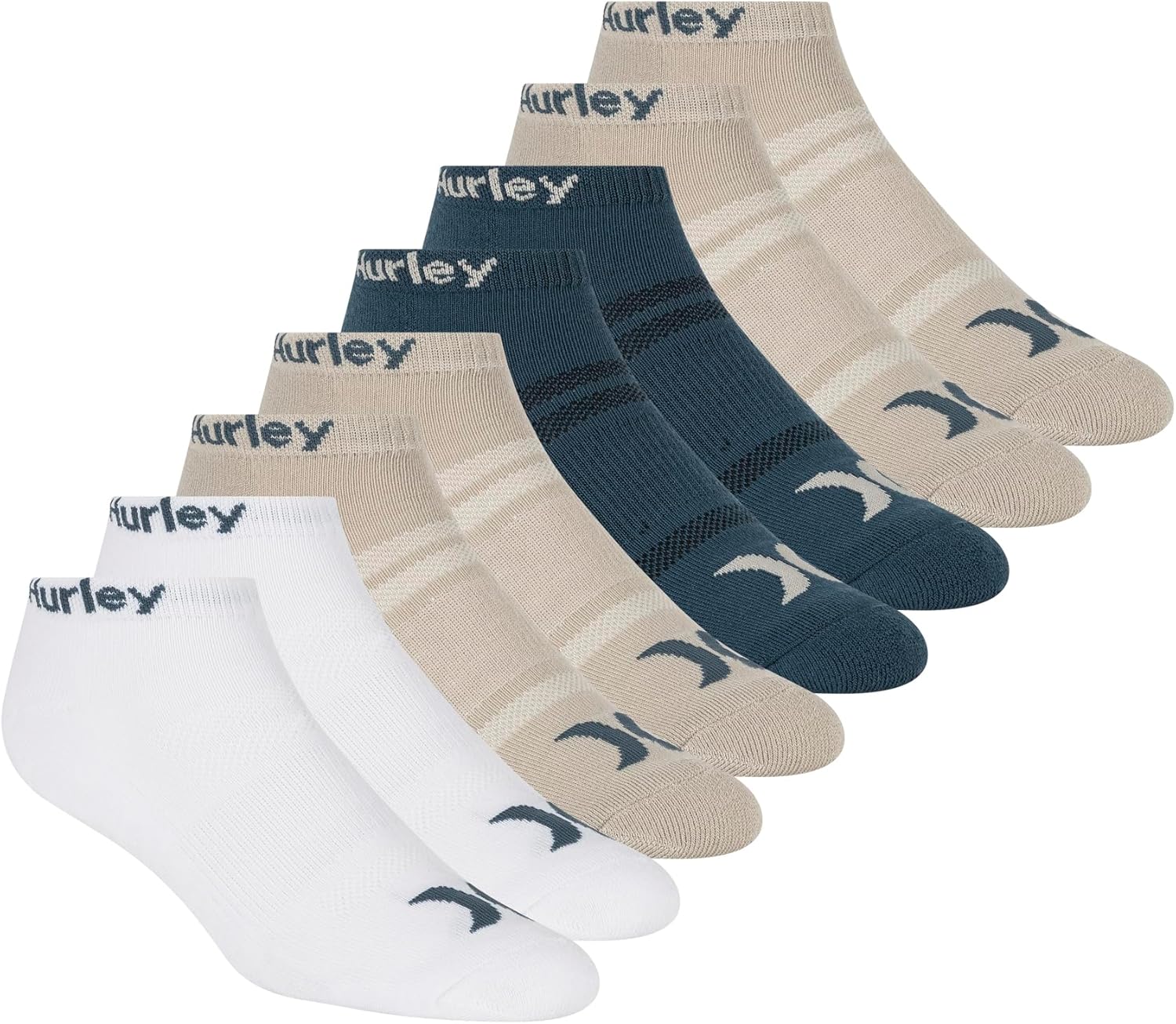 Hurley Mens 8 Pack Sport Cushioned Low Cut Socks
