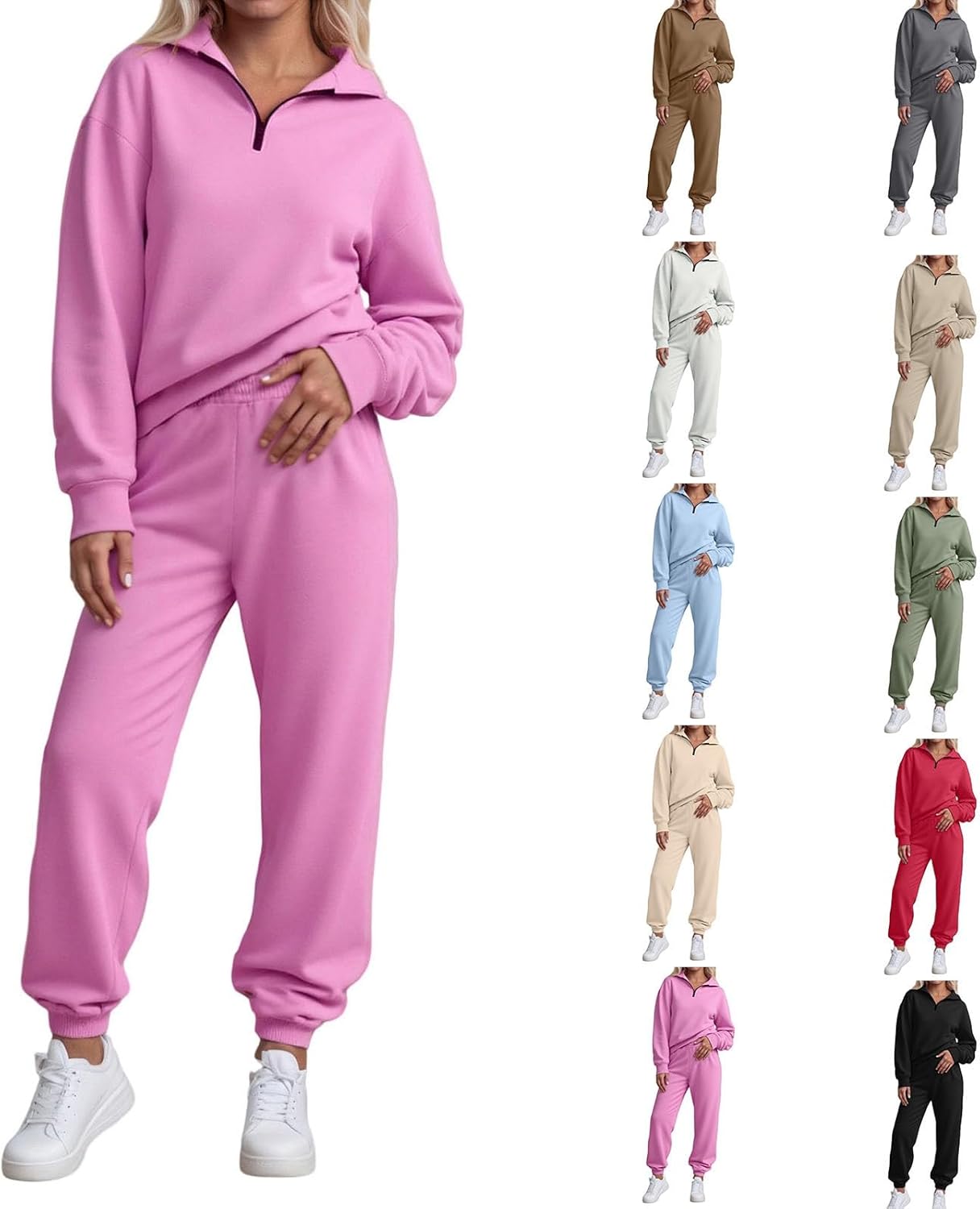 Women's Sweatsuits 2 Piece Outfits Long Sleeve Trendy Half Zip Pullover and Baggy Sweatpants Set with Pockets Tracksuit