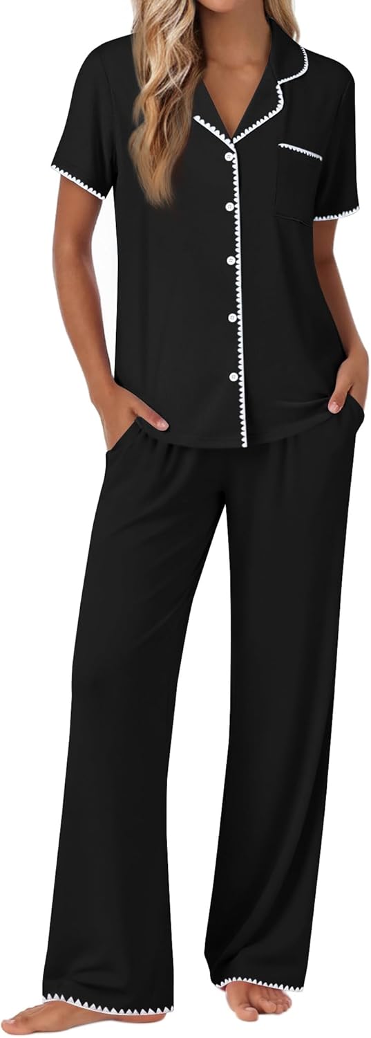 Ekouaer Pajamas for Women Set Button Up Soft Pjs Short Sleeve 2 Piece Lounge Sets Comfy Sleepwear