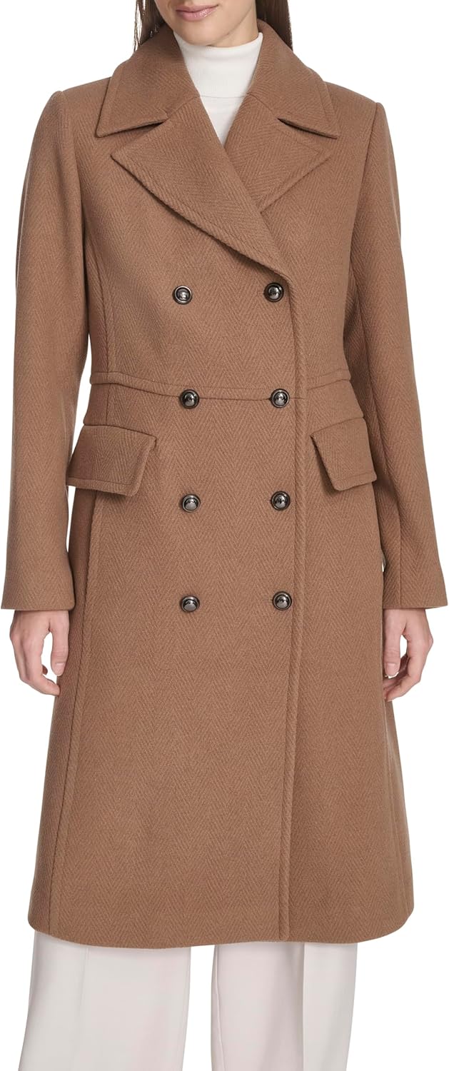 Kenneth Cole Women's Chevron Textured Twill Wool With Notched Lapels & Fashion Military Style Hardware