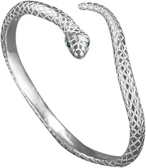 Yeahgoshopping Sterling Silver Snake Bangle Bracelet with Green Eyes, 925 Silver Women's Fashion Jewelry Charm for Birthday Party Gift - One Size Fits Most