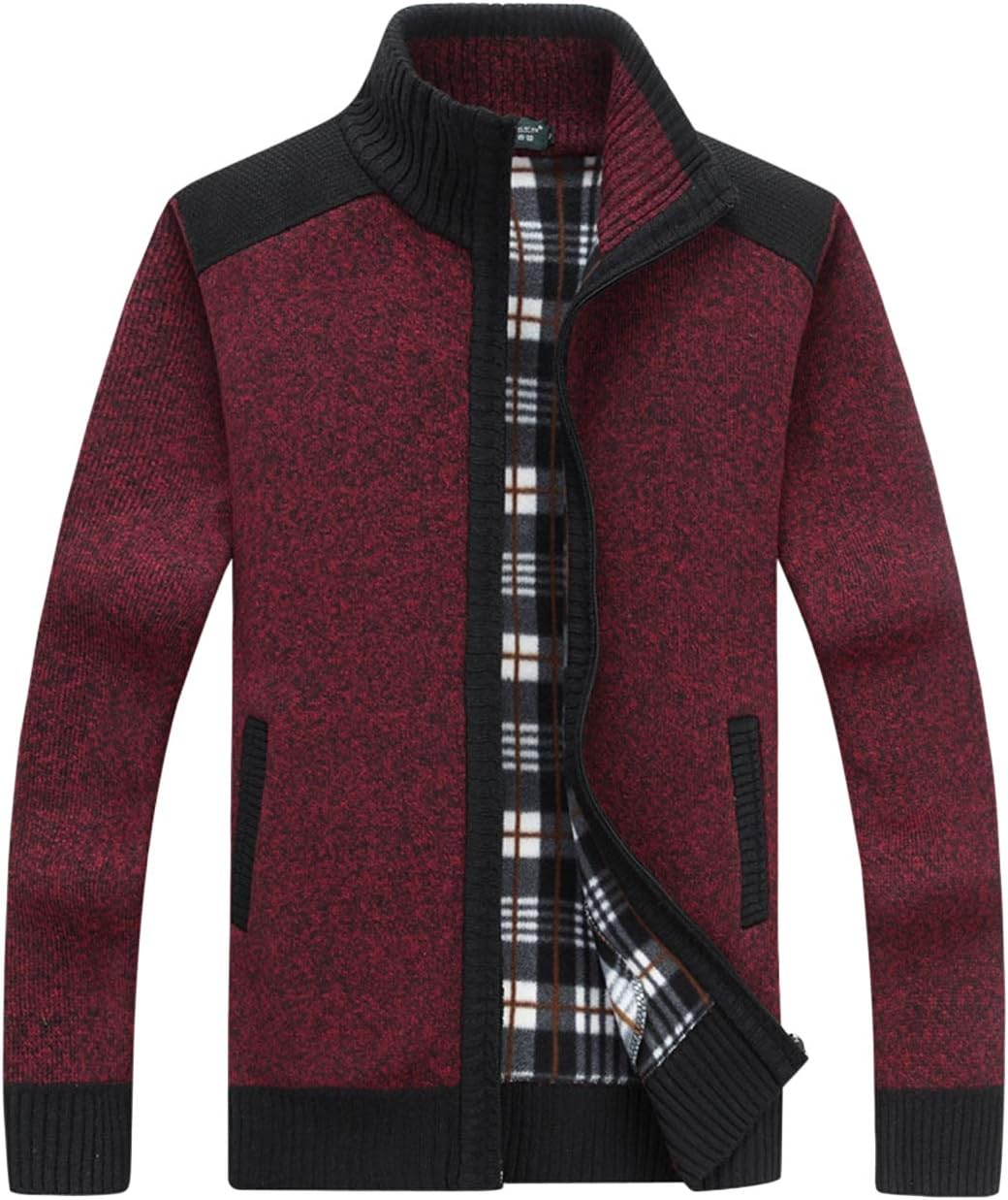 Yeokou Men's Casual Slim Full Zip Thick Knitted Cardigan Sweaters with Pockets