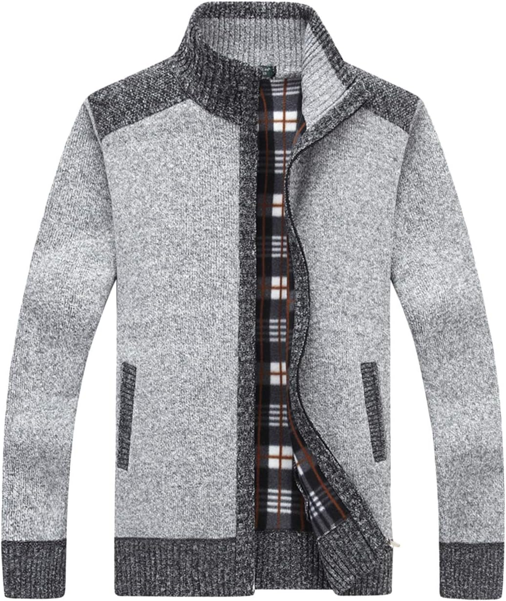 Yeokou Men's Casual Slim Full Zip Thick Knitted Cardigan Sweaters with Pockets