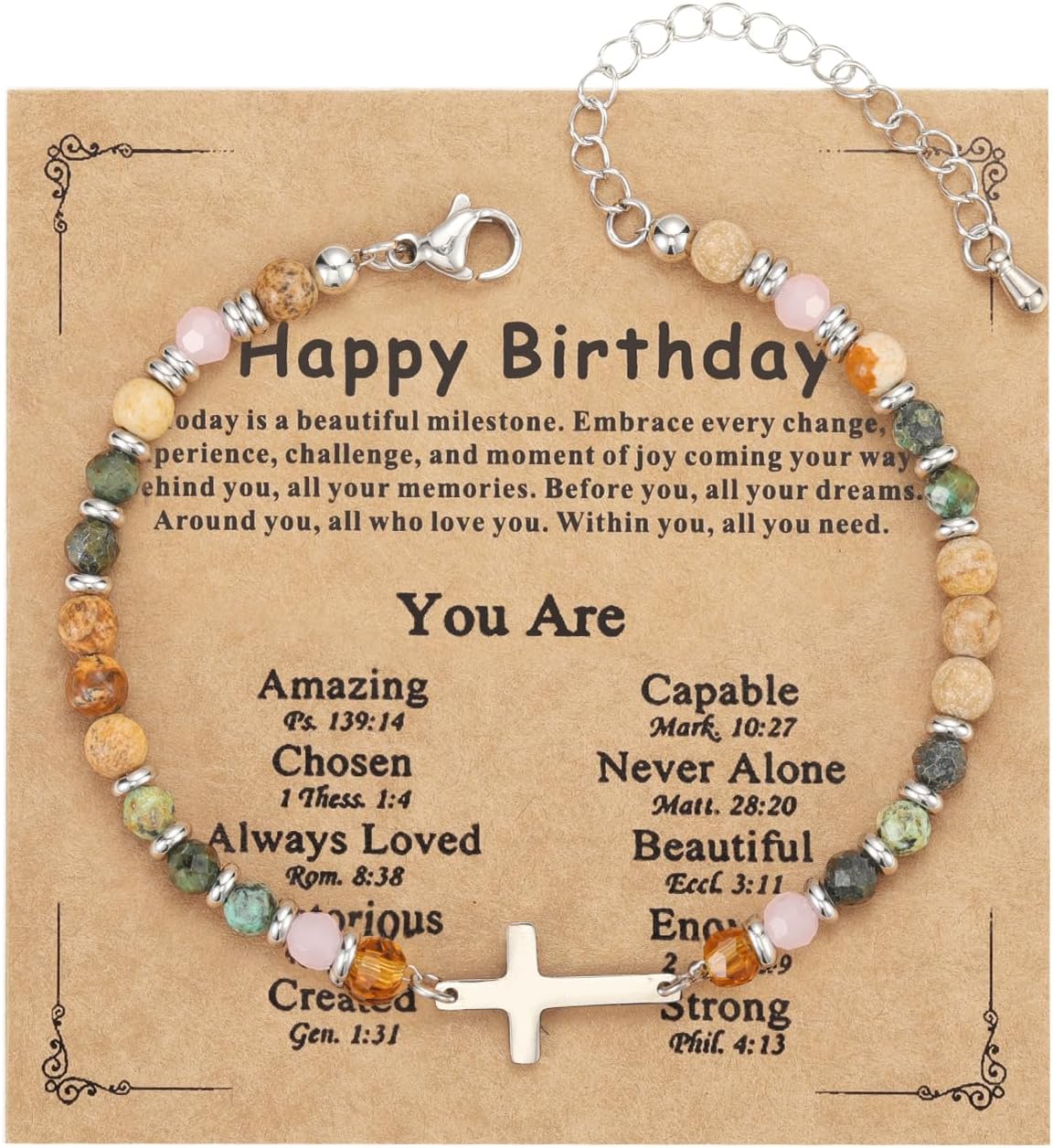 Emibele Religious Cross Bracelet for Women, Christian Cross Bead Bracelets with Natural Stone, Religious Christian Faith Jewelry, Stocking Stuffers for Women, Friendship Jewelry