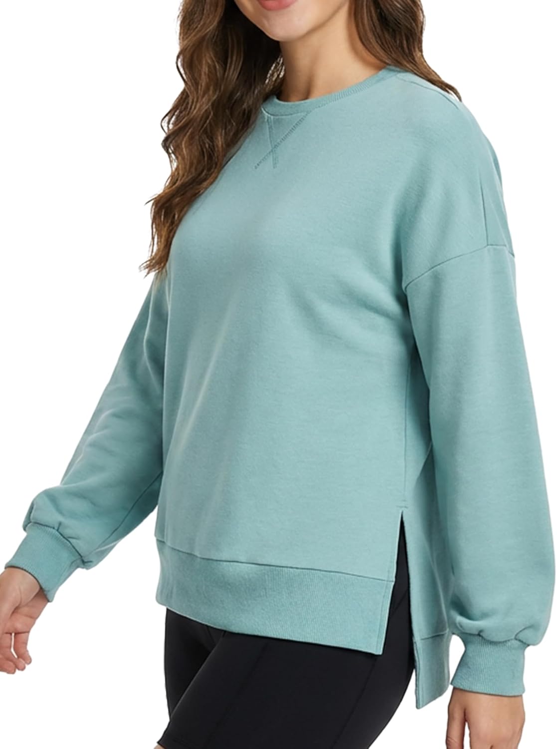 AURUZA Crewneck Sweatshirt for Women Long Sleeve Sweatshirt Drop slit sweatshirt