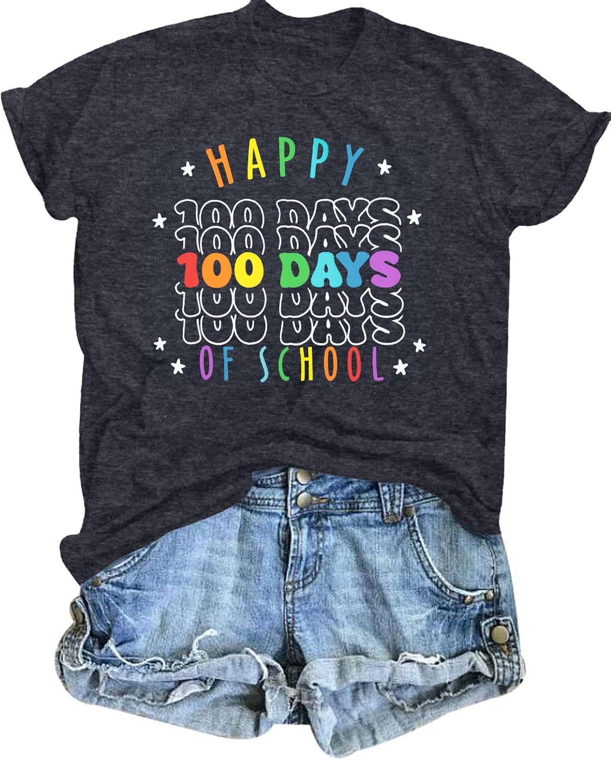 100 Days of School Shirt Women Teacher Shirts Cute Teacher Appreciation Gifts Casual Short Sleeve Tops