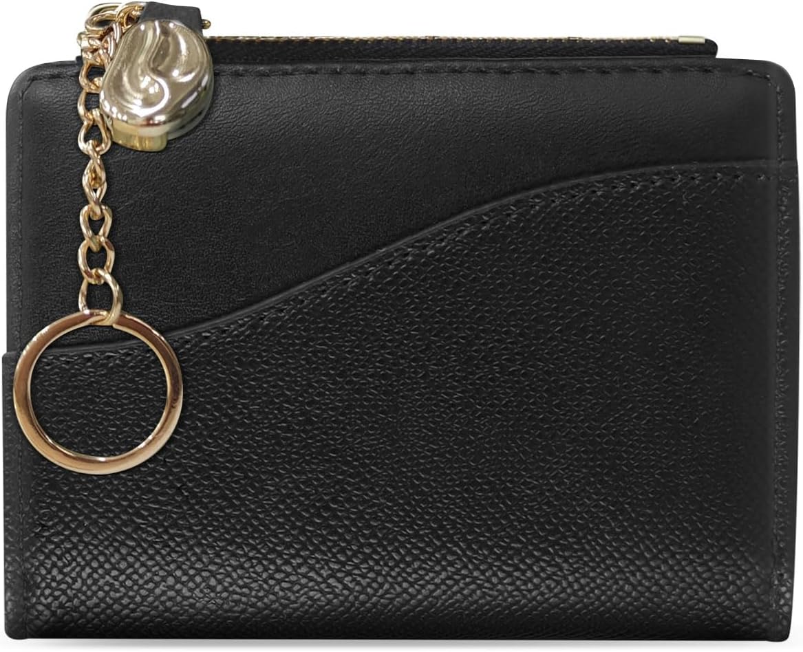 WishLotus Keychain Wallet for Women, Bifold Small Wallet with Key Ring and Zipper Pocket, PU Leather Card Holder Wallet (Black)