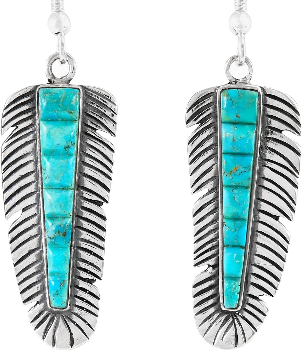 Feathers Turquoise Earrings 925 Sterling Silver & Genuine Gemstones