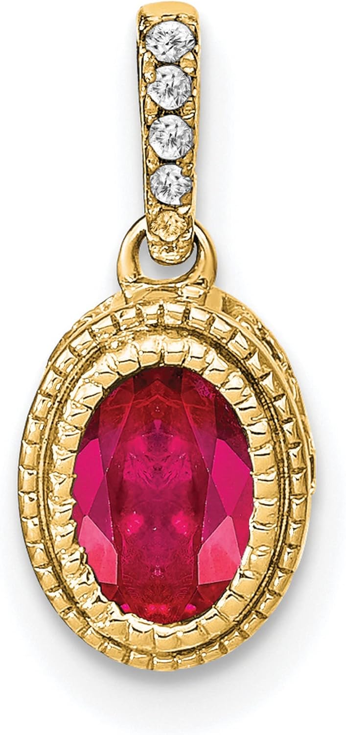 14k Yellow Gold Oval Faceted Ruby Pendant with Textured Bezel Setting and Diamond Accent Bail, Red Gemstone Necklace for Women, Fine Jewelry Birthstone Accessory, Romantic Gold Ruby Necklace