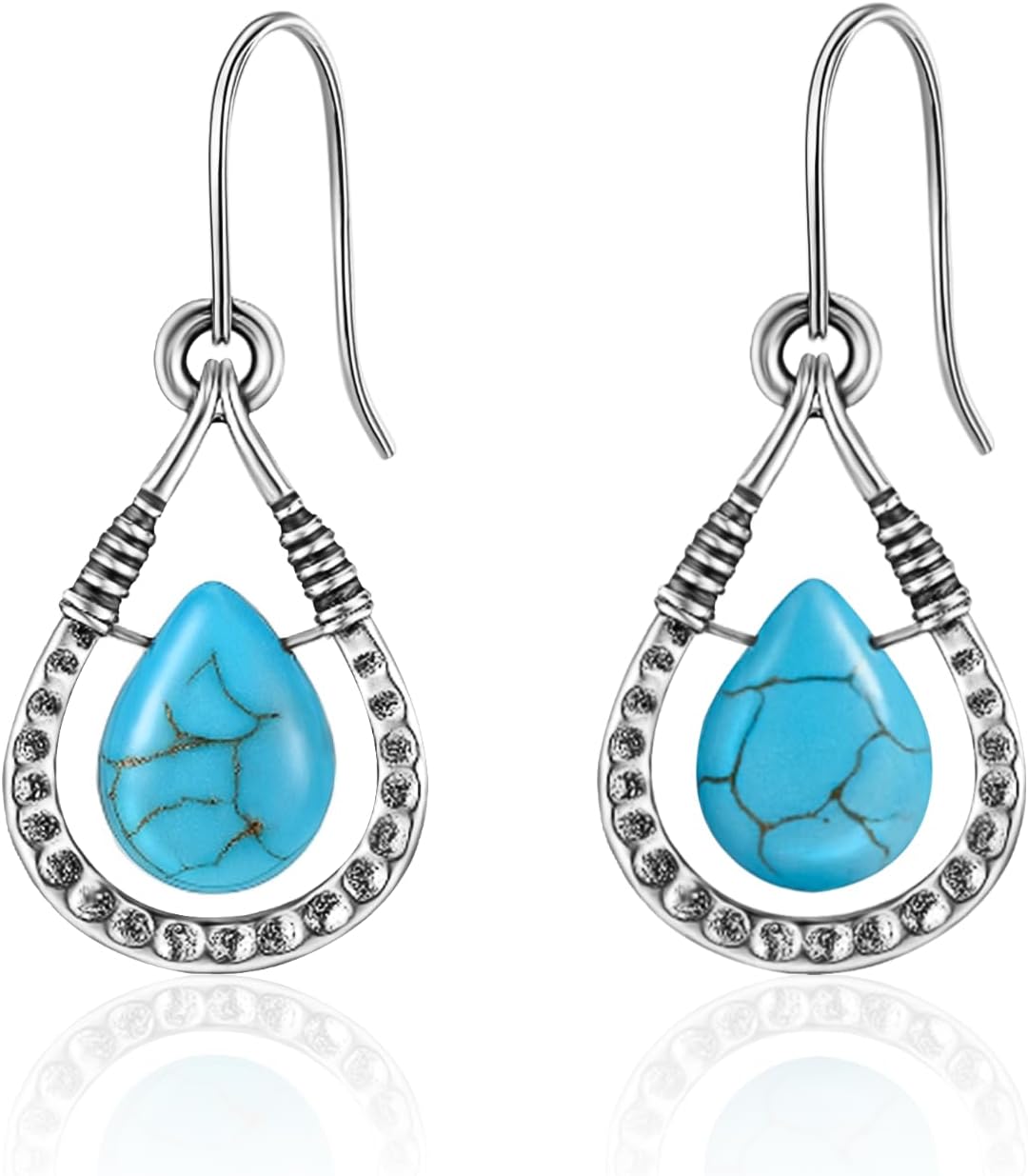 Silver Teardrop Birthstone Earrings - Swiveling Turquoise Dangles, Hypoallergenic Boho Women's Jewelry Gift