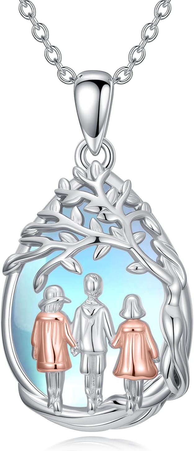 Family Tree of Life Necklace 925 Sterling Silver Moonstone Father/Mom Tree of Life Pendant Jewelry Birthday Christmas for Women Wife Grandma