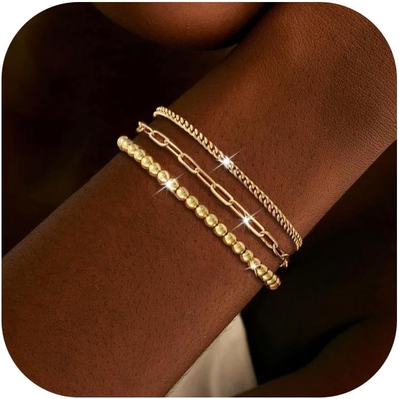 YANCHUN Bracelet Stack for Women Gold Stackable Bracelets Non Tarnish Link Bracelet Gold Beaded Bracelets for Women Elegant Layered Jewelry Sets