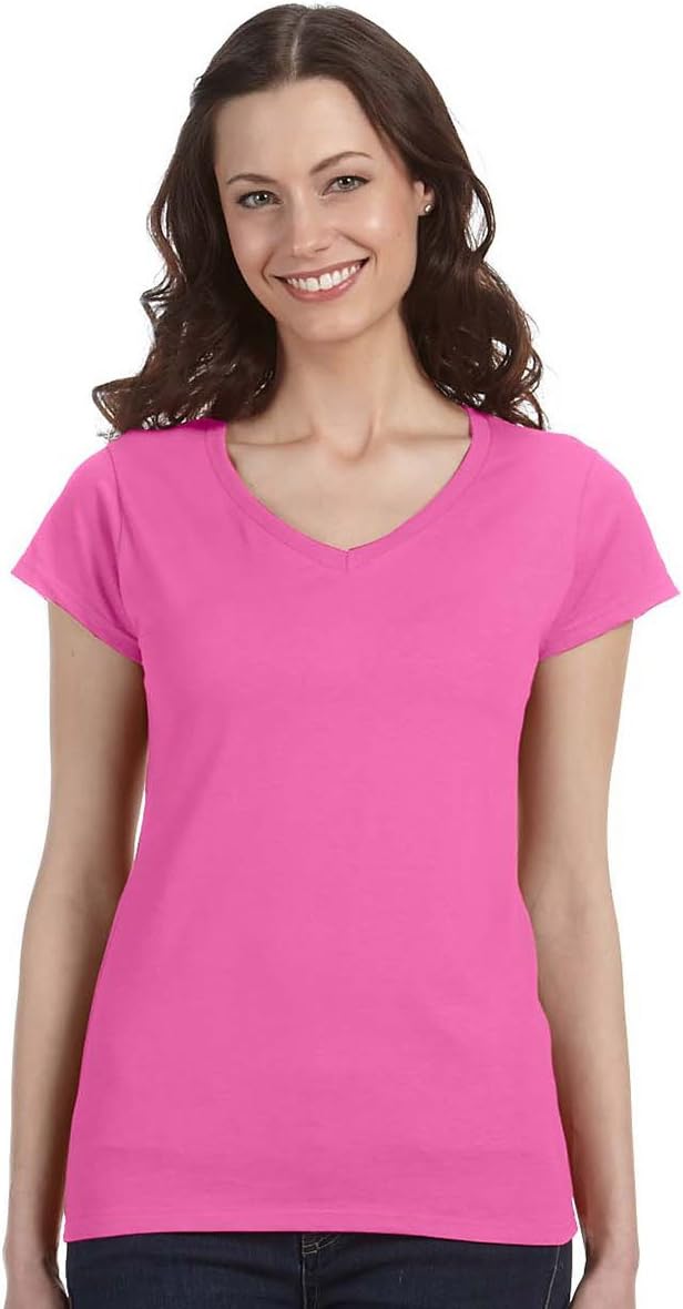 Gildan G64VL Ladies 4.5 oz. Softstyle Junior Fit V-Neck T-Shirt - Azalea - XX-Large