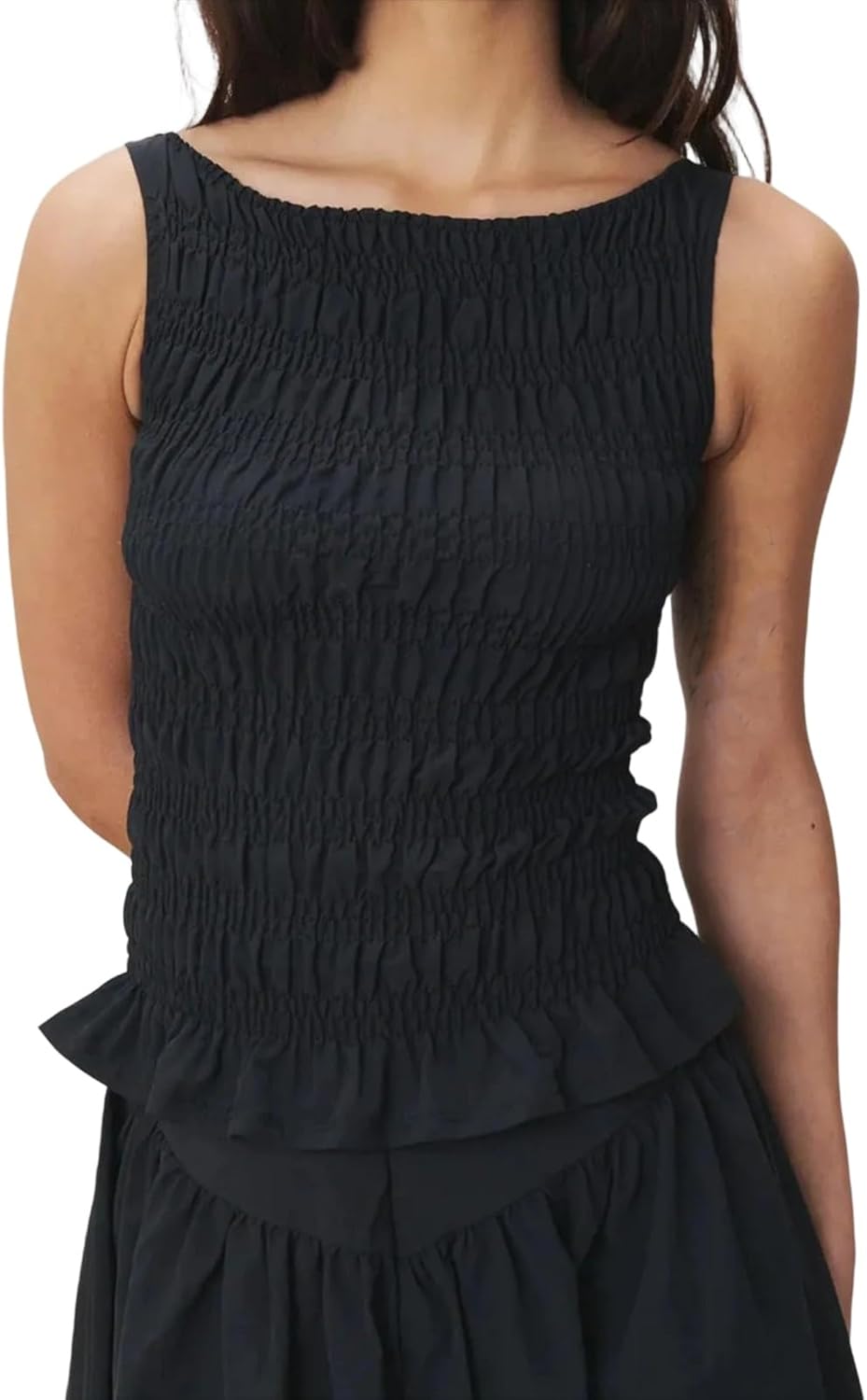 Women Smocked Tank Top Y2K Shirred Frill Sleeveless Crop Top Plaid Ruffle Hem Top Shirt Beach Vacation