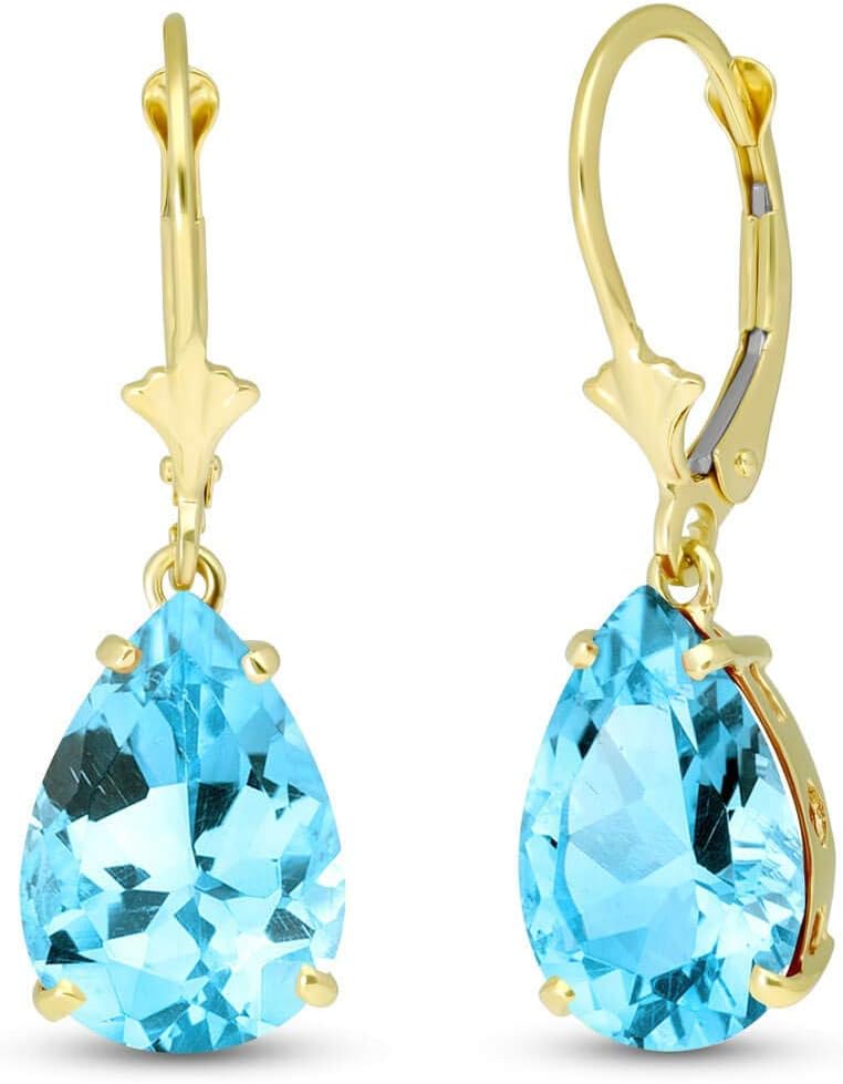 Galaxy Gold GG 14k Solid Gold Leverback Earrings with Natural Blue Topaz