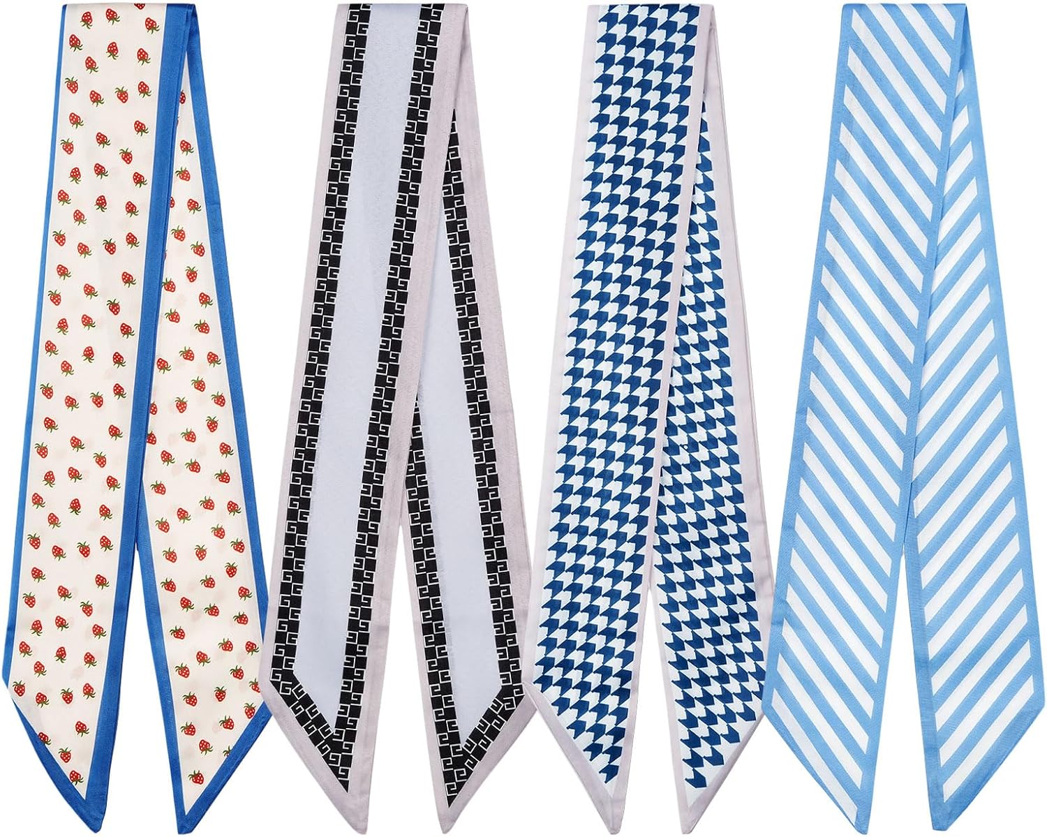 4 Pack Purse Scarf Handbags Skinny Twill Hair Scarves Narrow Neck Scarf Band Women Fashion Accessories Bag Charms