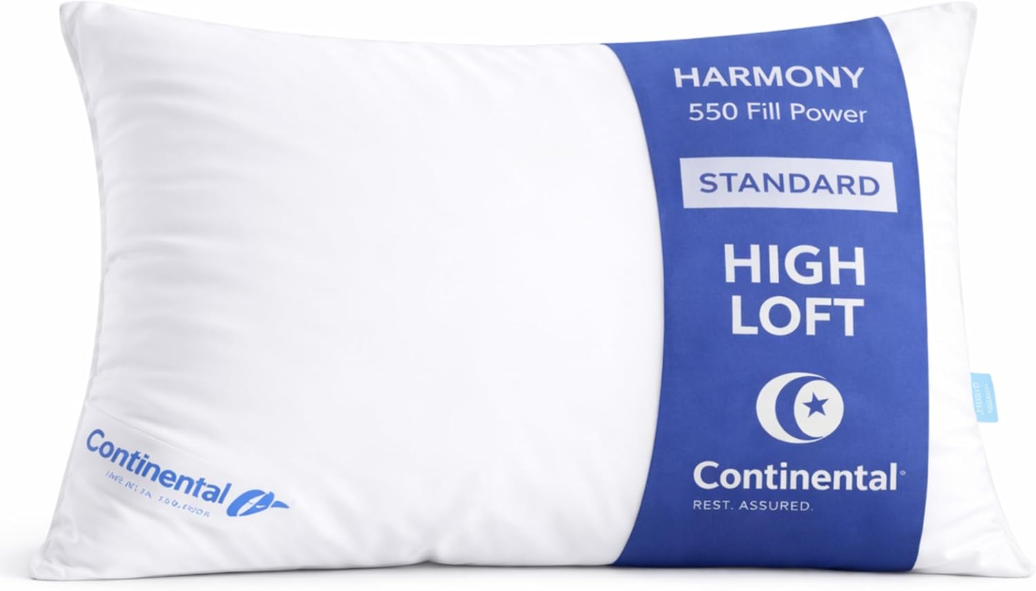 Continental Bedding Harmony White Goose Down Pillow 550 Fill Power Firm Loft 100% Cotton 400 Thread Count Shell Standard Size 1 Pack Made in USA