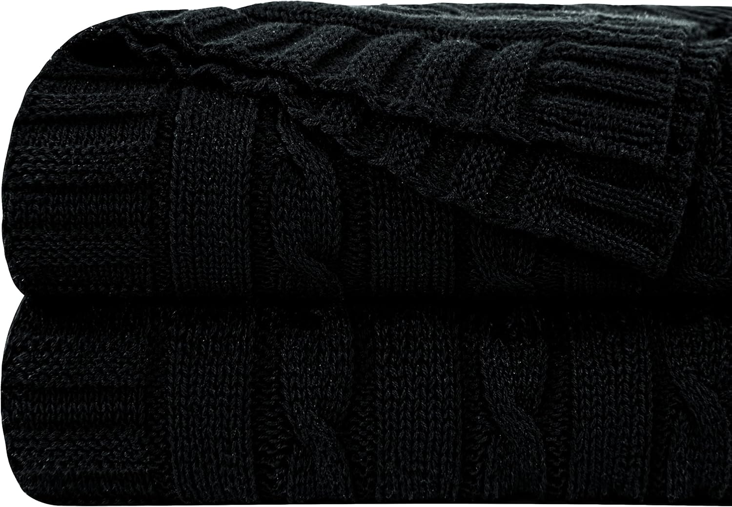 NTBAY 100% Pure Cotton Cable Knit Throw Blanket, Super Soft Warm 51x67 Knitted Throw Blanket for Couch, Sofa, Chair, Bed - Extra Cozy, Machine Washable, Comfortable Home Decor, Black