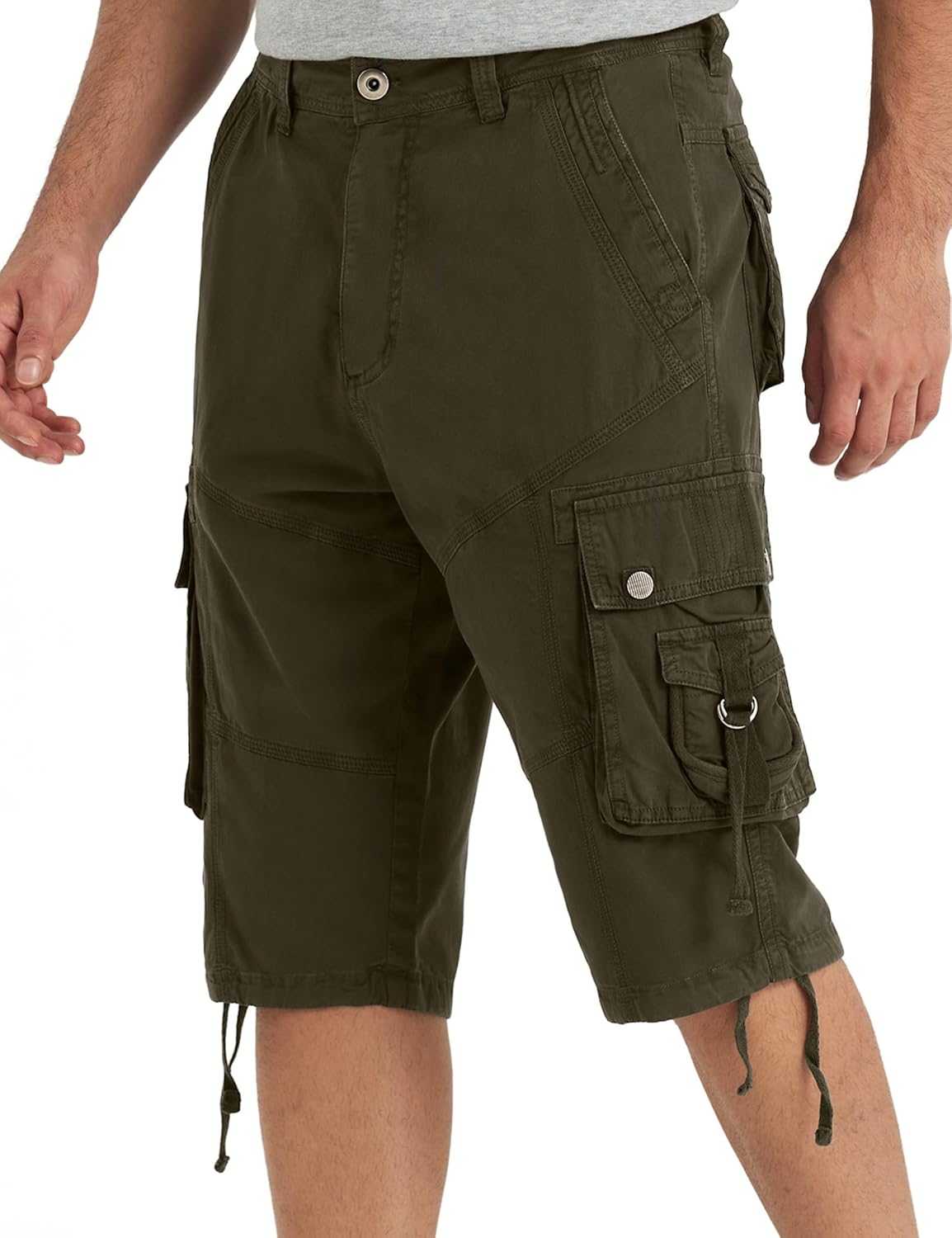 Men's Cargo Shorts Multi Pockets Mens Shorts Classic 13 Inches Cotton Relaxed Fit Casual Capri Long Shorts, Olive Green