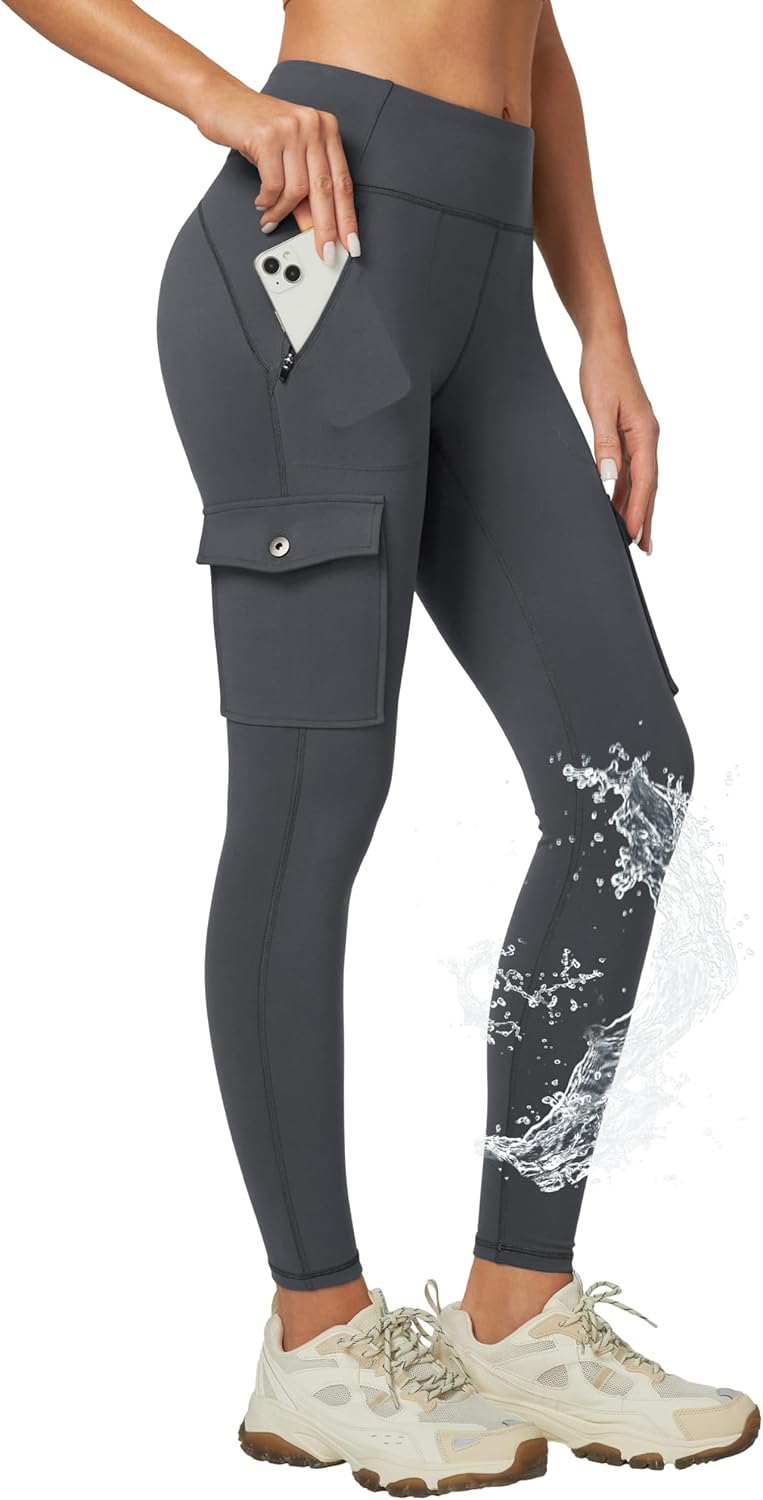 Ewedoos Hiking Pants Women Leggings with Zipper Pockets Water Resistant Workout Compression Leggings Tummy Control UPF50+