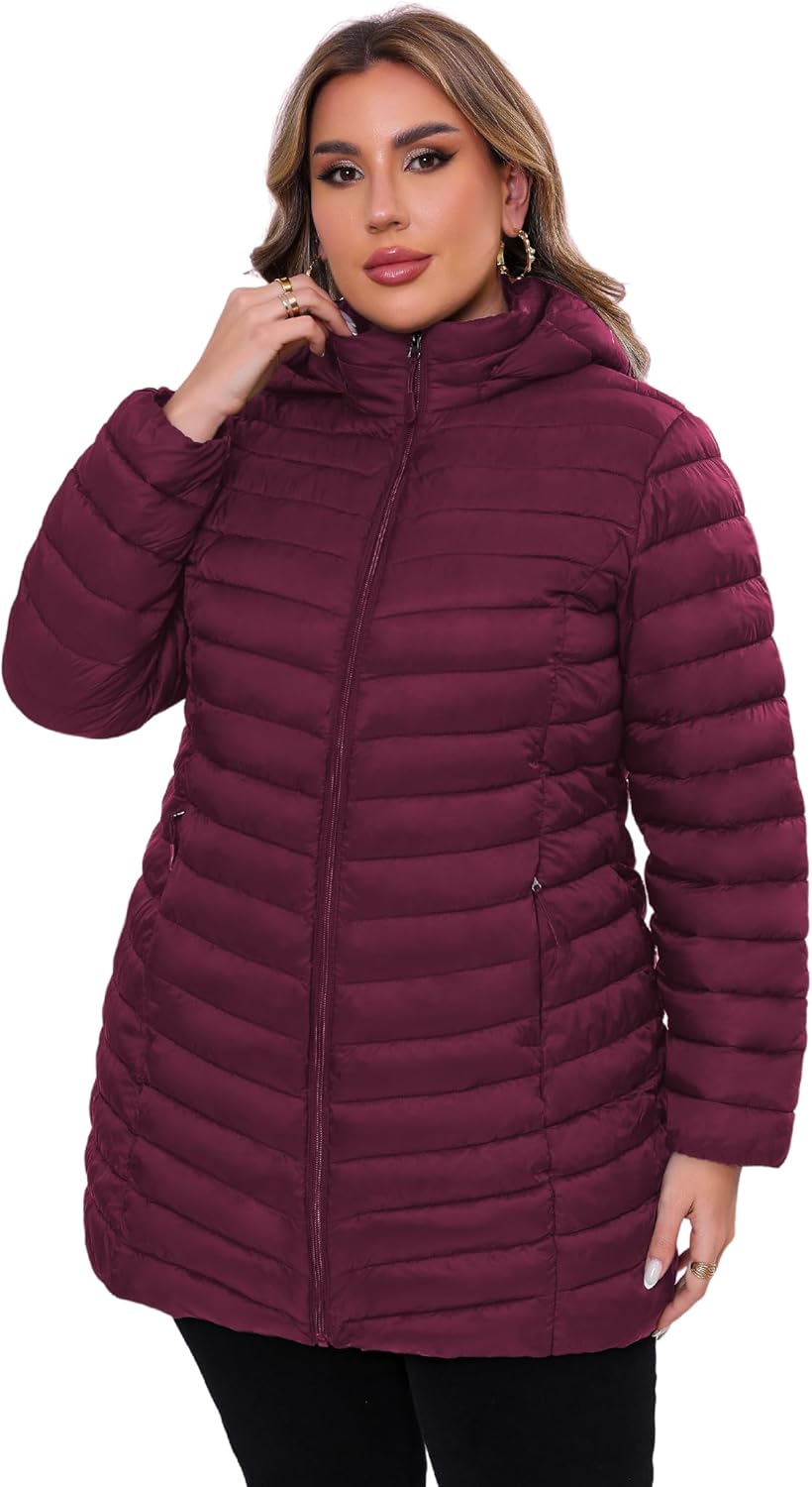 ANOTHER CHOICE Plus Size Puffer Jacket for women, Packable Hooded Lightweight Travel Puffy Jacket (1X-6X)