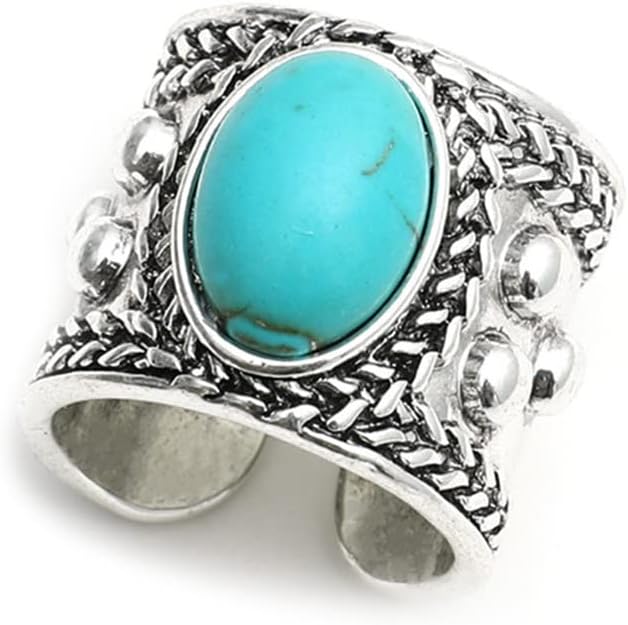 Dtja Turquoise Adjustable Open Wide Band Ring for Women Girls Vintage Boho Ball Bead Blue Stone Knuckle Finger Rings Comfort Fit Bohemian Birthday Christmas Retro Party Jewelry Gift