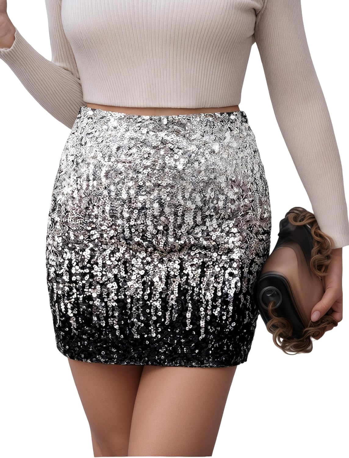 Sequin Mini Skirt for Women Sparkle Stretchy Bodycon Glitter Skirts