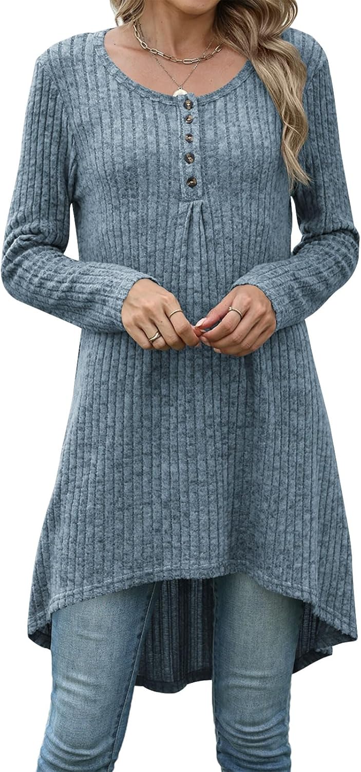 Naggoo Long Tunic Tops for Women for Leggings Long Sleeve Henley Shirts High Low Fall Sweaters M-3XL