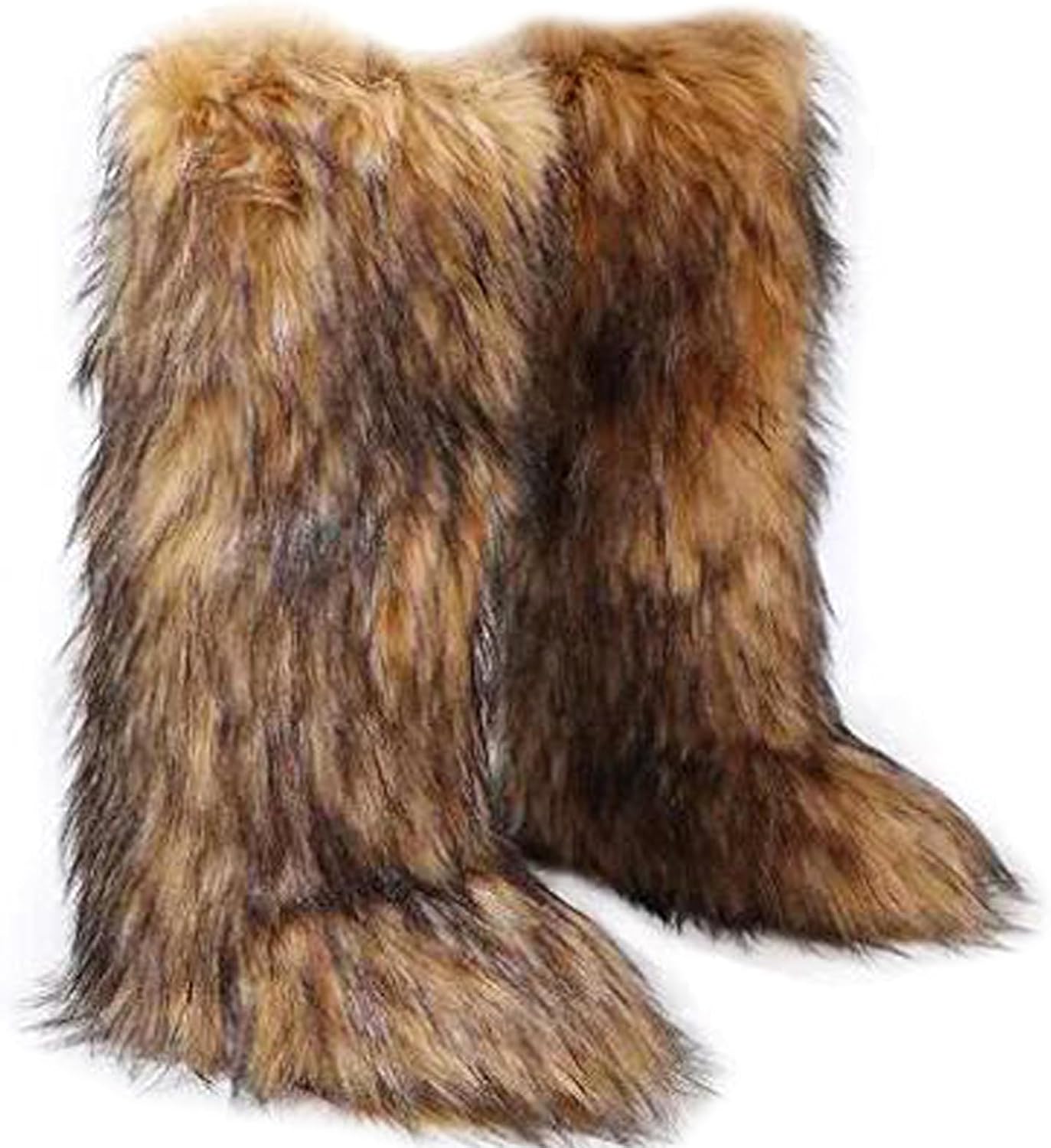 Tall Furry Faux Fur Boots for Women,Winter Snow Fluffy Long Boots for Girls,Knee-High Flat