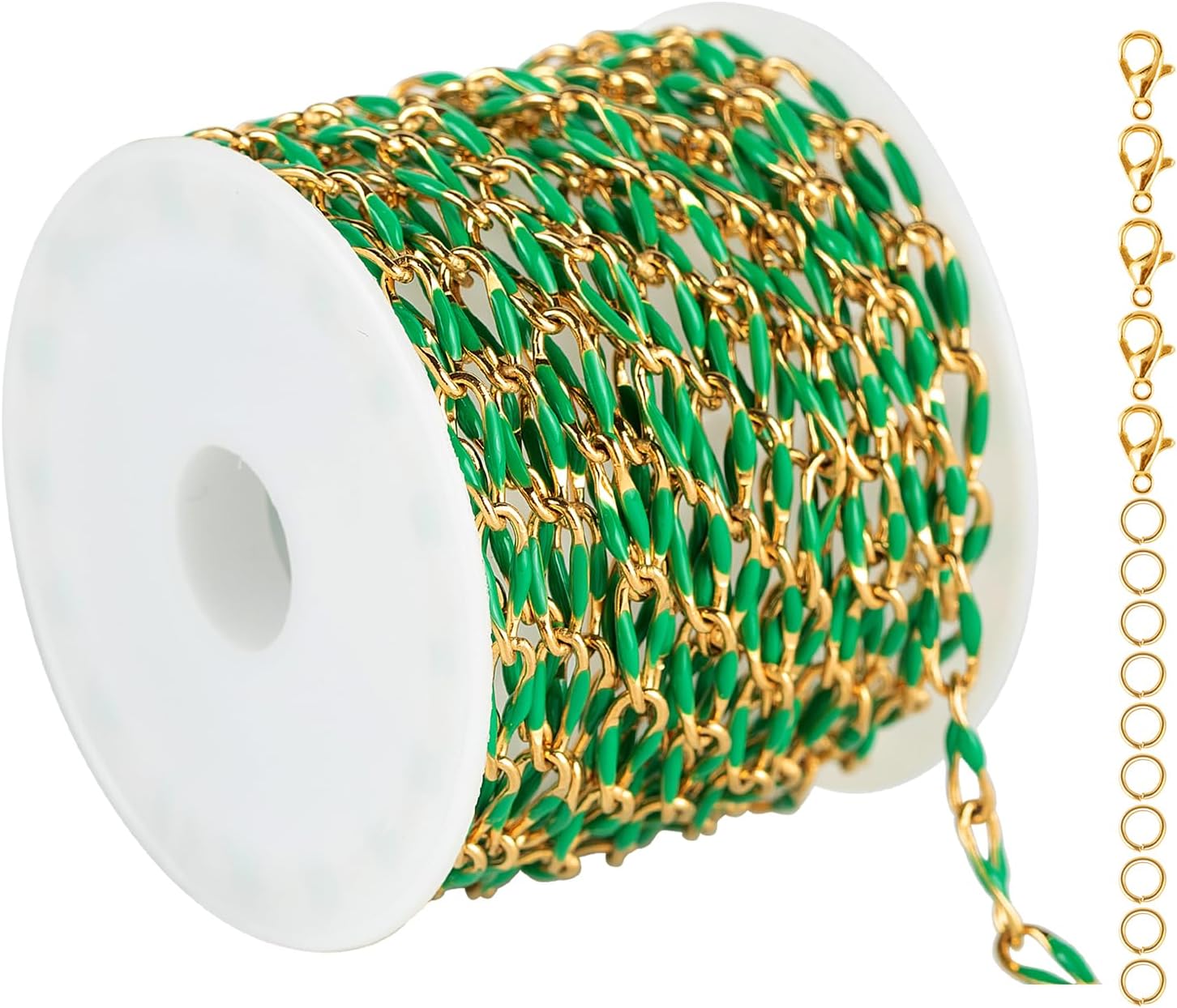 - Wide Usage Chain- The stainless steel cable chain roll is excellent for DIY necklaces, bracelets, anklets, earrings, and different body chains. You can also use this elegant green enamel chain as key chains, bag decoration chains, sweater chains, belt chains, purse chains, pocket chains, boot chains, and other types of decoration chains. A great gift for DIY lovers on Christmas, New Year, birthdays, and other festivals.