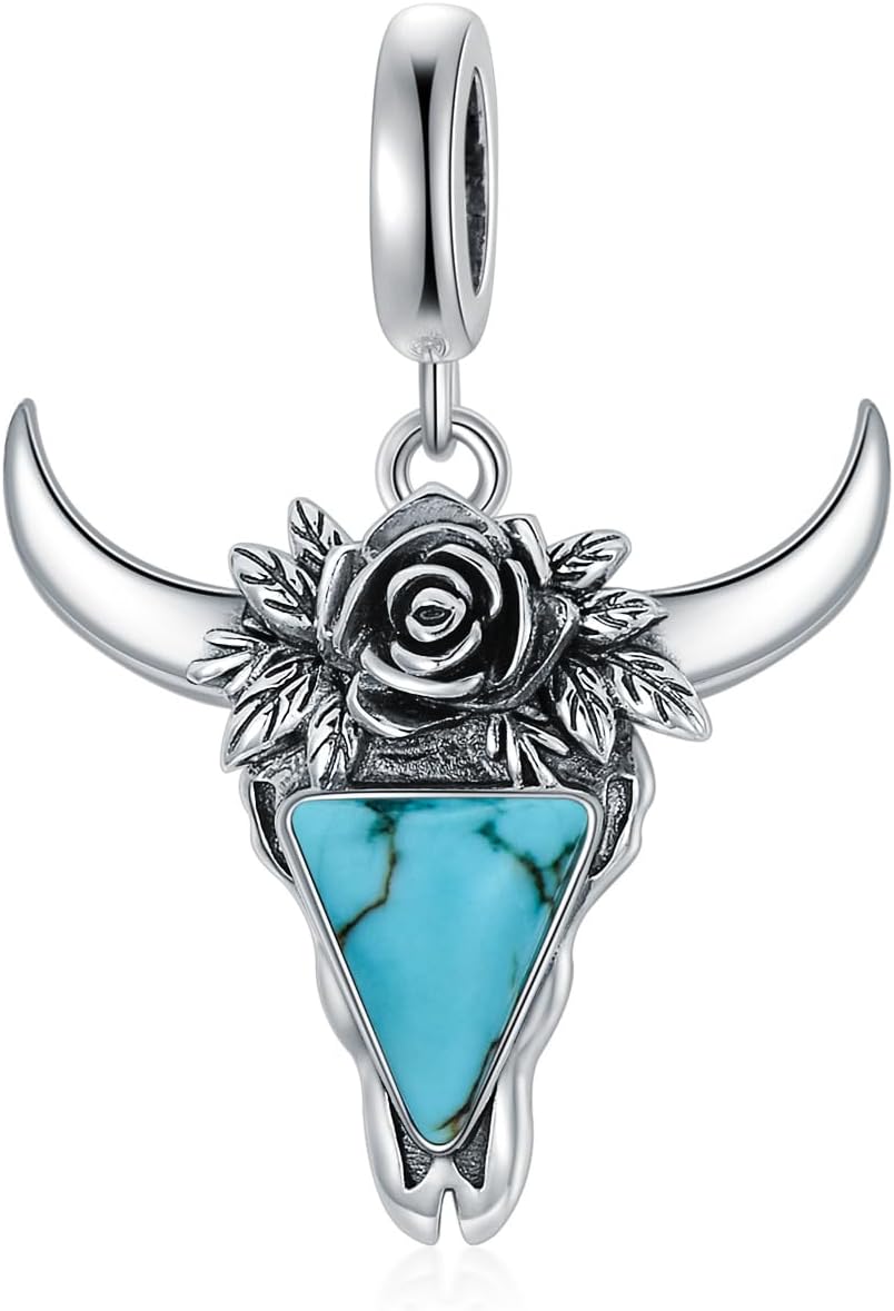 Turquoise Cow Skull Bead for Bracelet 925 Sterling Silver Cow Head Skull Dangle Charm Jewelry Gifts for Women