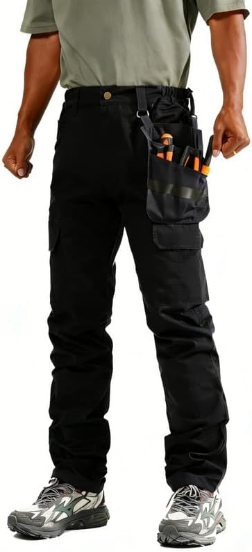KVE Mens Work Pants Ripstop Waterproof Elastic Waist Outdoor Breathable Cargo Tactical Hiking Quick-Dry Pants with 7 Pockets