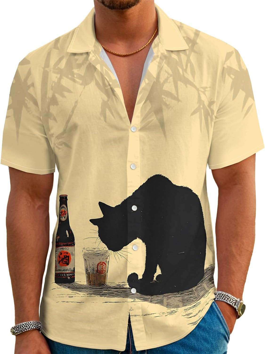 Funny Hawaiian Shirt for Men Novelty Cartoon Casual Short Sleeve Tops Summer Tropical Vacation Button Down Shirt