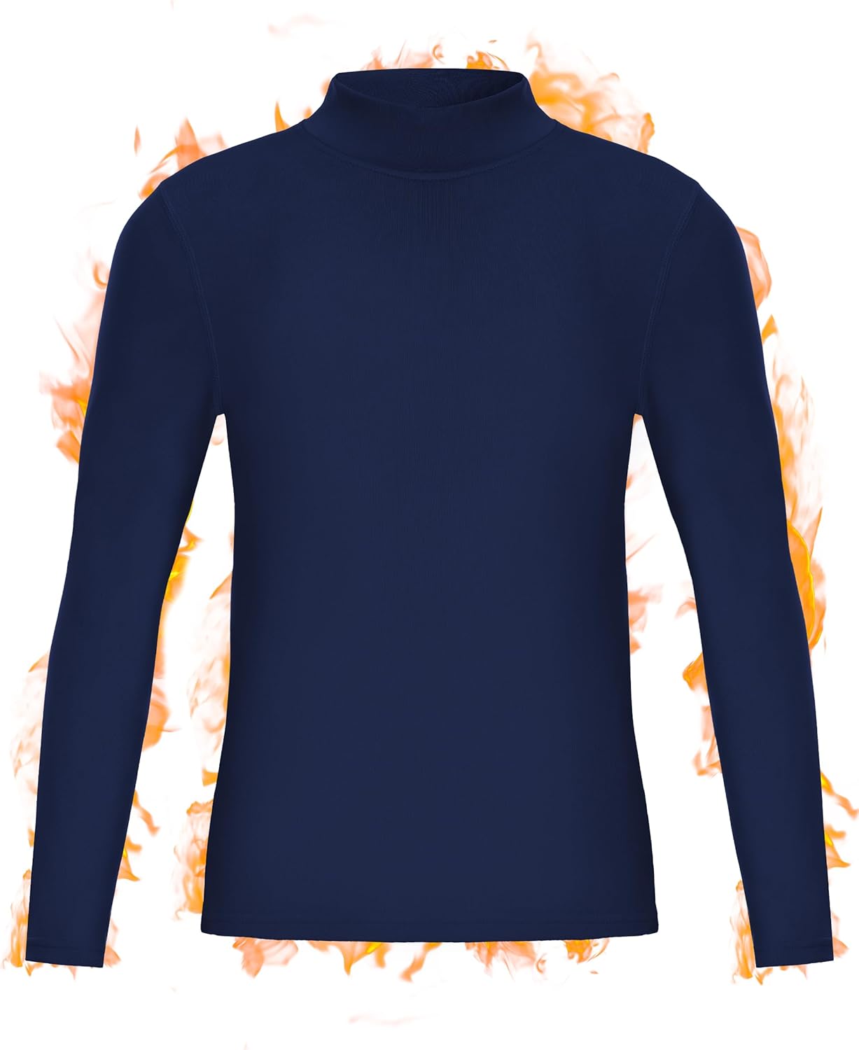 Roadbox Youth Boys Compression Thermal Shirt, Long Sleeve Mock Neck Fleece Base Layer, Kids Undershirt for Baseball Football