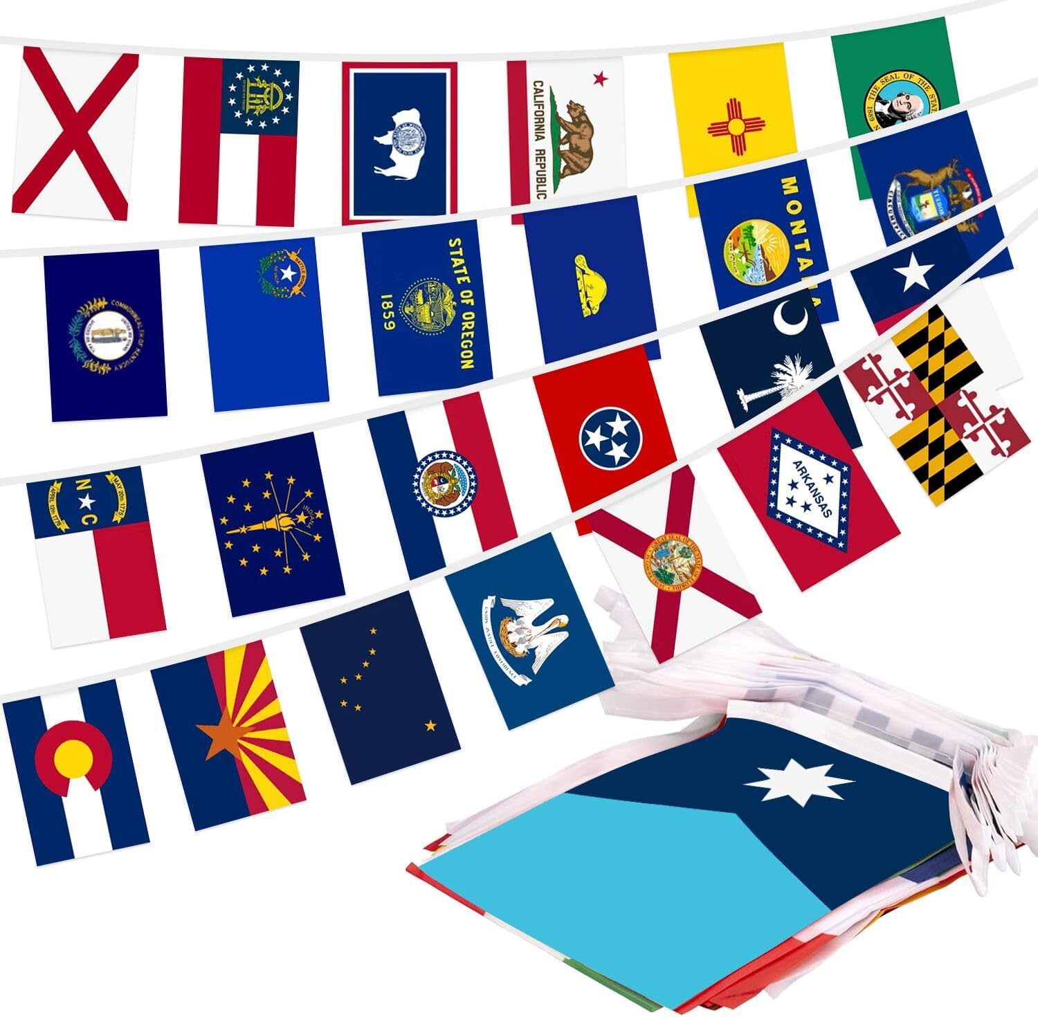 USA 50 States String Flags Banner for 250th Anniversary Decoration, 6x9 Inches Each, Double-Sided, 41 ft Long, Fade-Resistant, Vivid Colors, Indoor Outdoor Decor