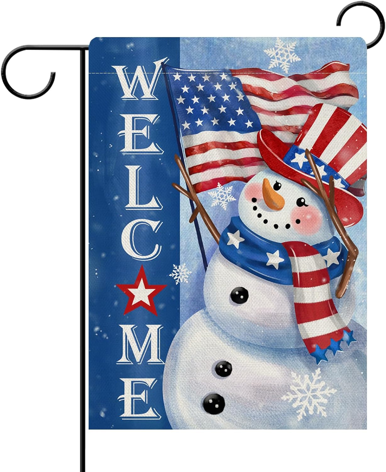 - Produced in Higher Quality -- The winter garden flags with snowman, American flag, snowflake patterns are printed in premium colorfast permanent dye to create colorful, vibrant, bright designs from creative, original artwork