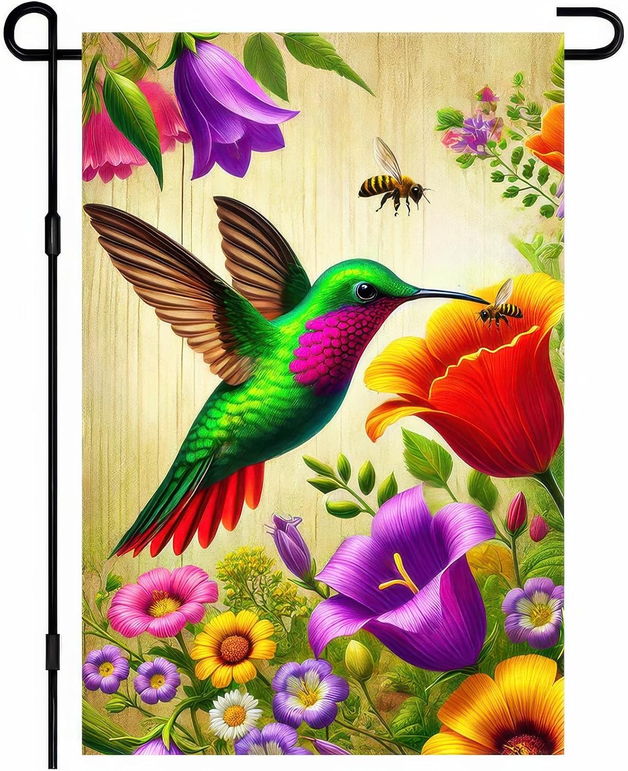 Spring Garden Flag 12x18 Inch Double Sided Hummingbird Welcome Small Flags For Outside Outdoor Decor Farmhouse Holiday Spring Summer Seasonal Decorations Yard Flags