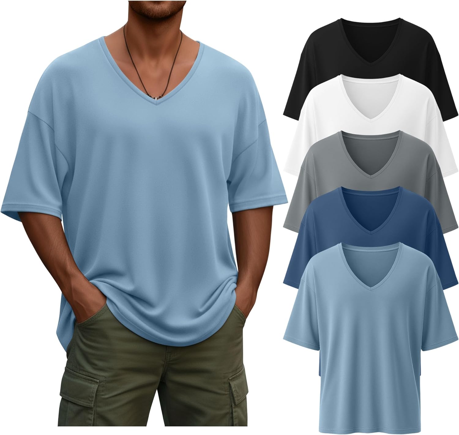 Neer 5 Pack Men's Oversized T Shirts V Neck Short Sleeve Soft Shirts Casual Basic Tee Loose Workout Solid Tops