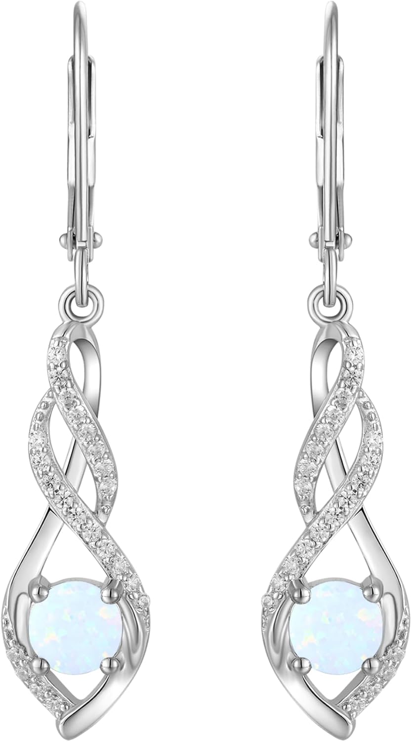 YL Infinity Twisted Earrings for Women, Solid Sterling Silver 18K White Gold Plated Birthstone Dangle Leverback Jewelry