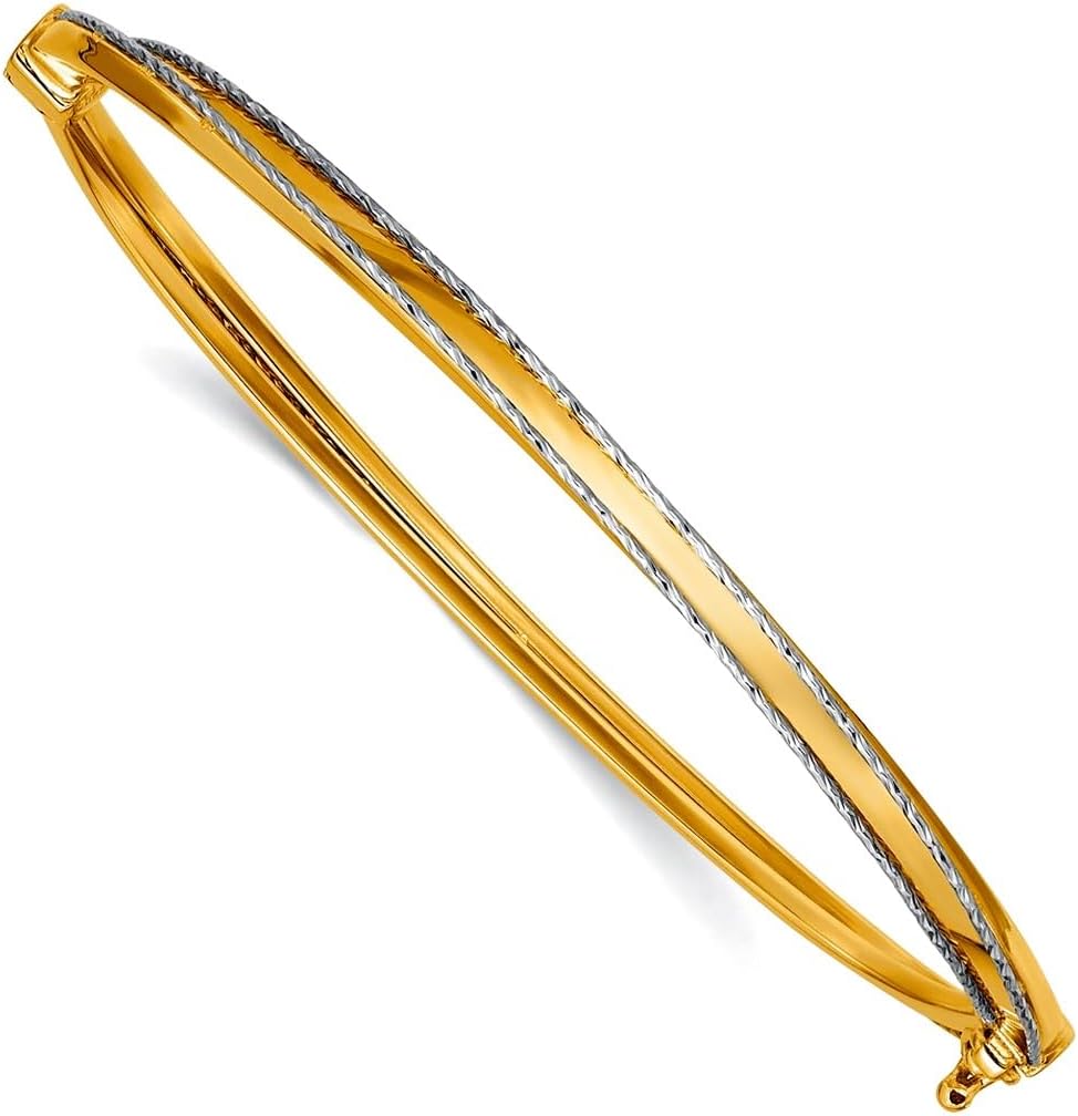 JewelryWeb 3mm 14k With Rhodium Polished and Sparkle-Cut Hinged Bangle Bracelet Cuff Bracelet for Women