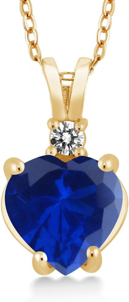 Gem Stone King 2.37 Ct Heart Shape Blue Created Sapphire White Diamond 14K Yellow Gold Pendant