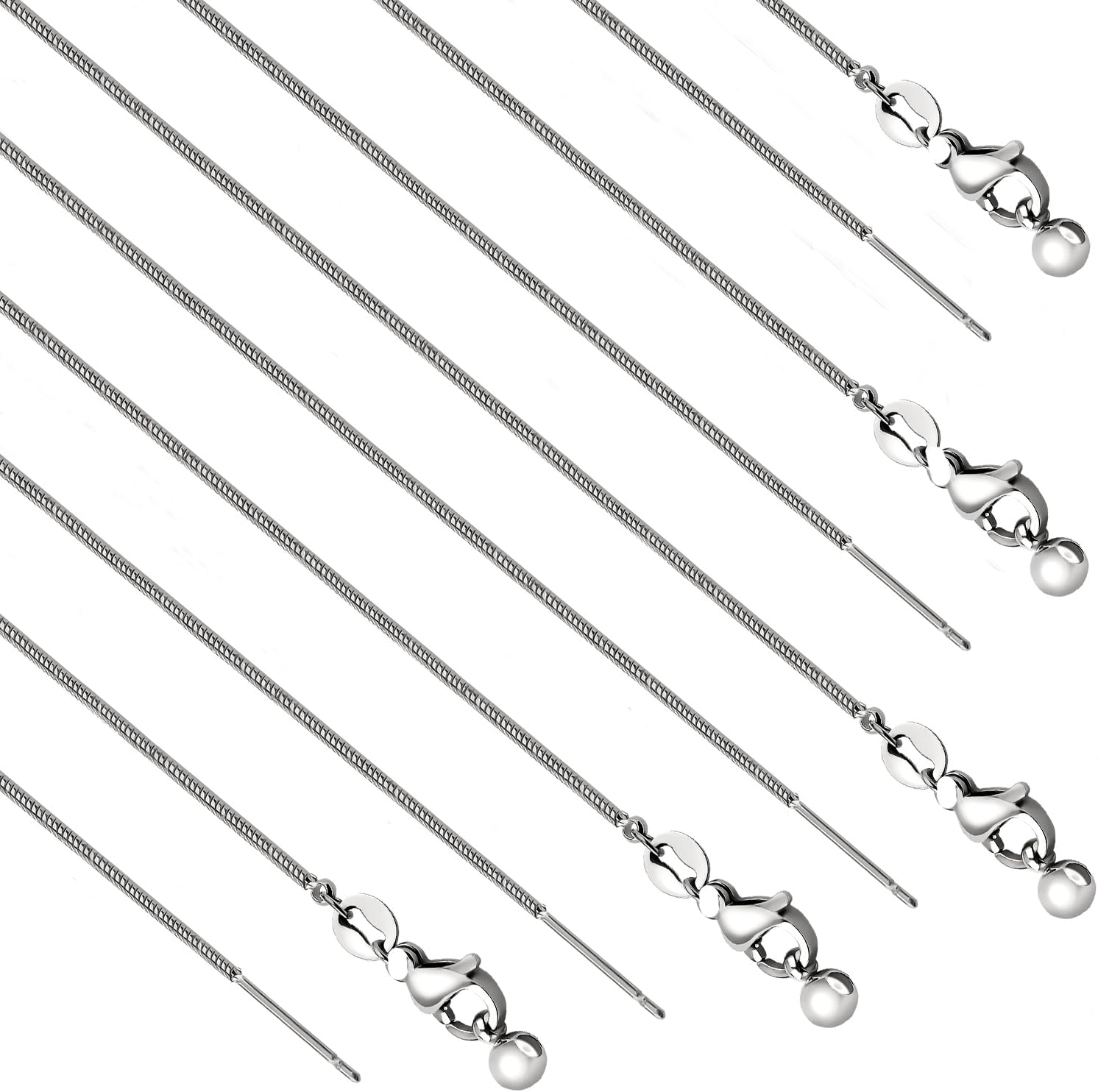 - Dainty Thin Necklace- The stainless steel snake necklace total length is approx 20 inches and 1mm wide; end needle size is approx 12mm long and 0.75mm wide, easy to through any beads or charms with holes smaller than 1mm. Thin yet strong stainless steel necklace suitable for most jewelry project diy.