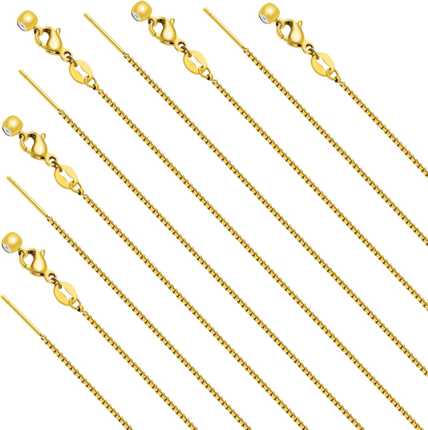 - Necklace Chain Set:You will receive 10 pcs gold box chain necklaces. Each necklace features a lobster clasp (for easy to put on and take off necklace), along with a threader and rubber stopper bead (which can be pulled to freely adjust the necklace length), ensuring effortless wear.