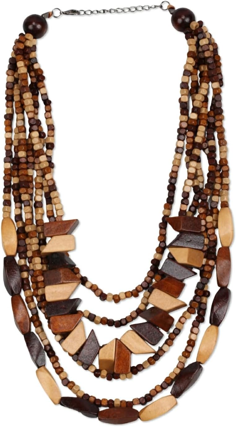 Big Long Colorful Chunky Statement Wood Bead Necklace for Women African Vintage Ethnic Multi Layers Pendant Bib Bohemian Jewelry