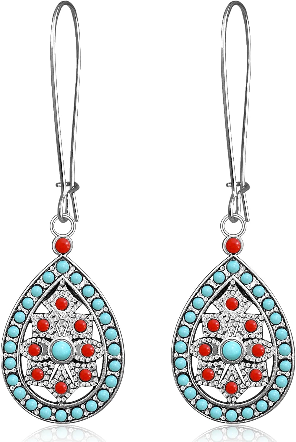 Retro Bohemian Style Hollowed Out Droplet Shaped Alloy Dangle Drop Earrings Creative Ethnic Style Colored Collision Bead Dangle Drop Earrings for Women Jewelry Gifts