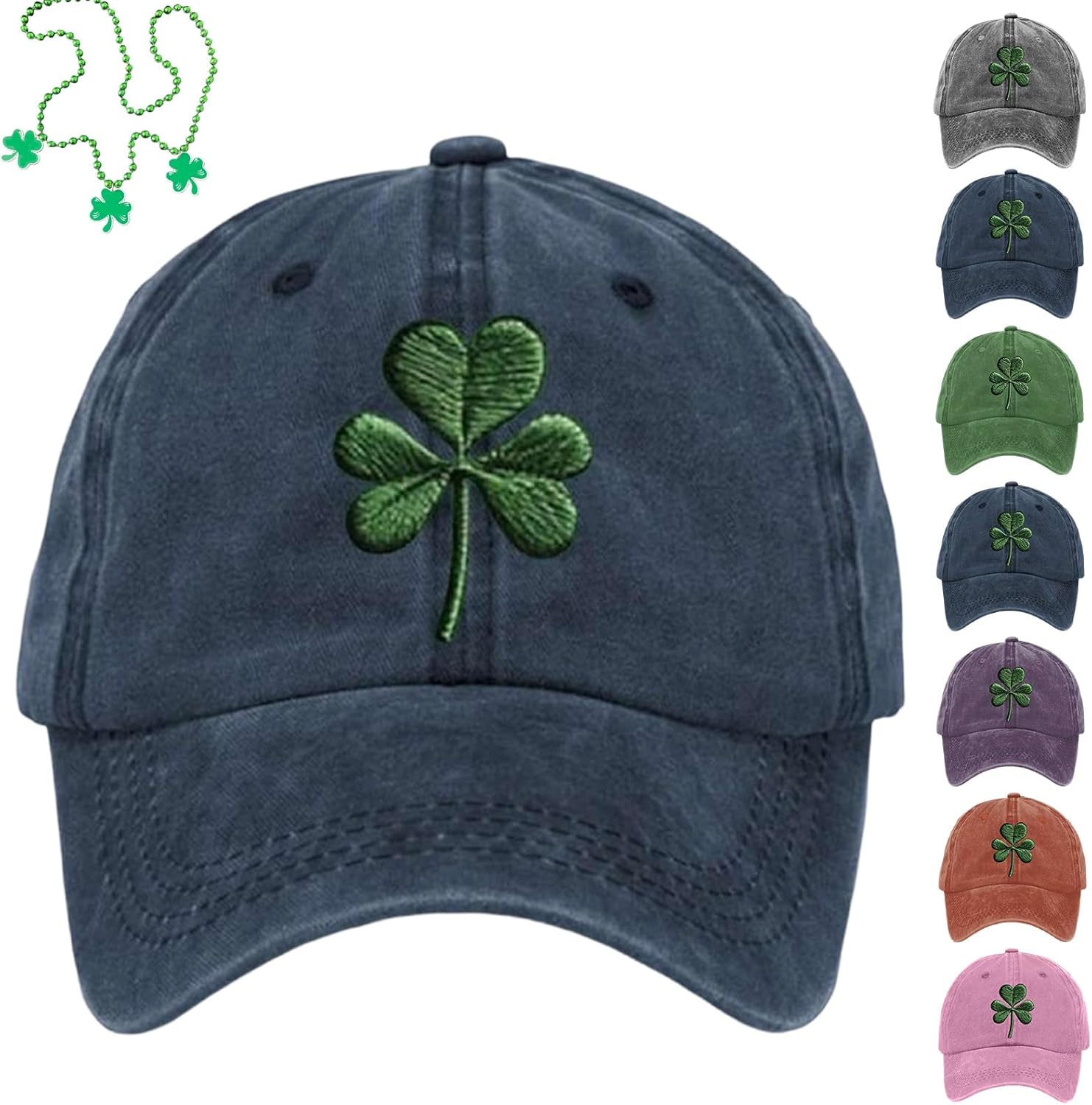 St. Patrick's Day Hat Lucky Clover Embroidered Baseball Cap Adjustable Vintage Trucker Hat for Men and Women