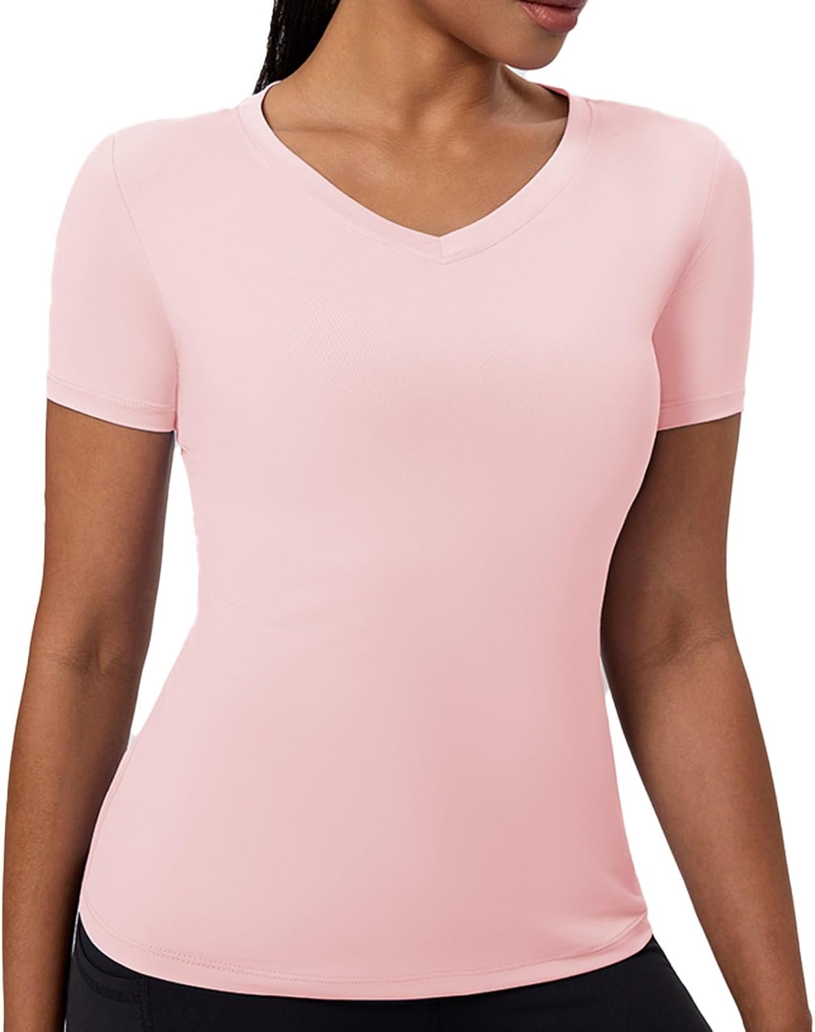 Women's Compression Short Sleeve V Neck Sun Protection Shirt Workout Basic Yoga Gym Tops Moisture Wicking T-Shirts