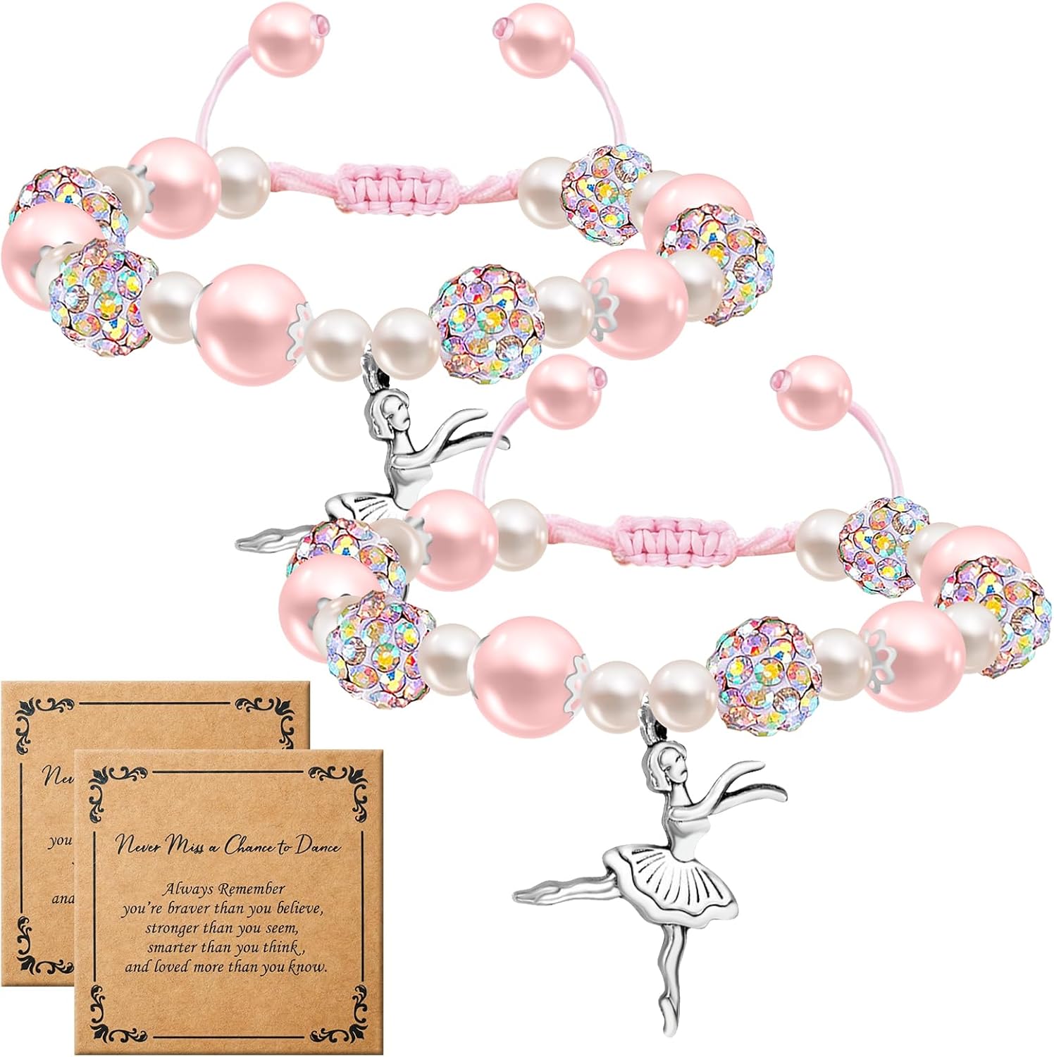 2 Pcs Dancer Gifts for Girls, Adjustable Chain with Ballet Accessories, Sparkle Pink Dance Bracelet for Friends Mate or Ballerina Party Favors, Ballet Bracelet for Daughter Gifts to Encourage Children